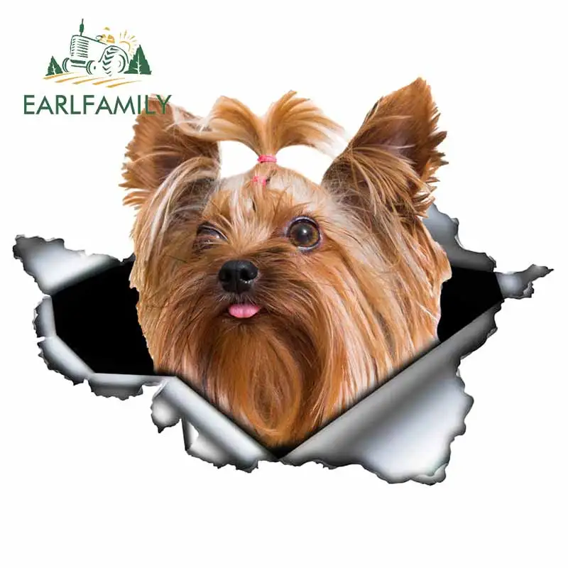 Виниловая наклейка EARLFAMILY, 13 см х 12,6 см, йоркширский терьер, рваная Металлическая Наклейка Автомобильные наклейки с животными, наклейка на окно, бампер, собаку, Стайлинг автомобиля