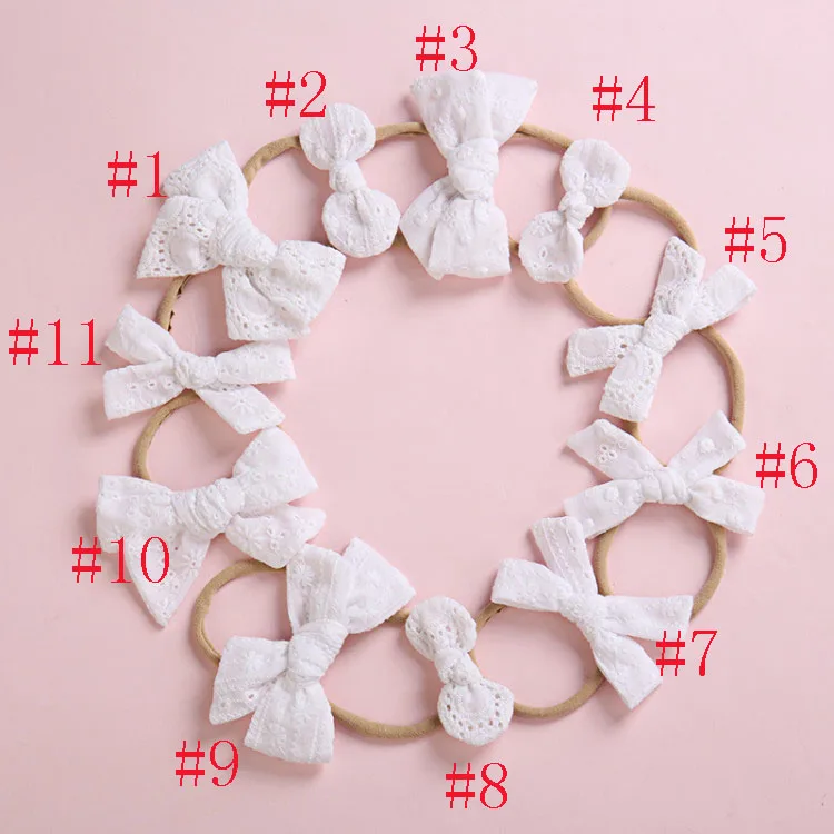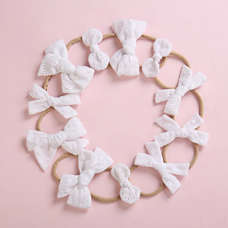 Повязка на голову для девочек, нейлоновая повязка на голову с бантом из хлопчатобумажной ткани, белая, 36 шт.лот, 4 дюйма, детские аксессуары для волос