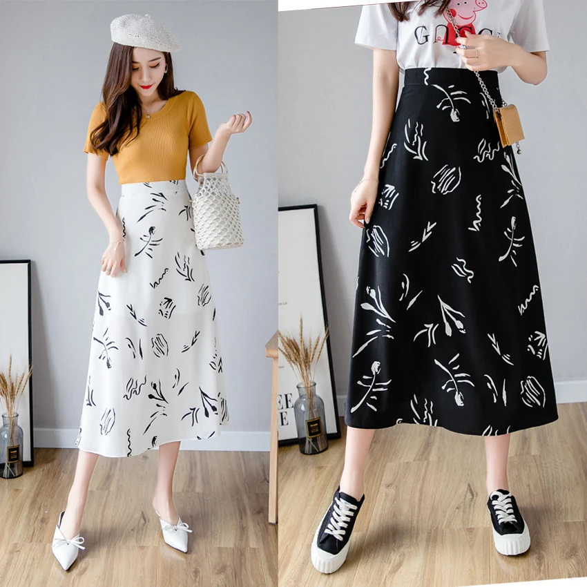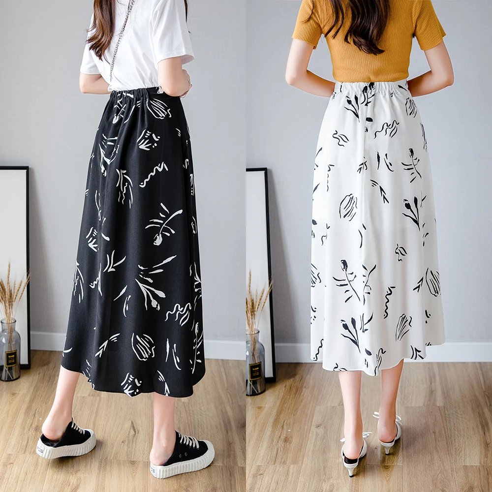 Женская шифоновая юбка с высокой талией, элегантная длинная юбка-макси с принтом в Корейском стиле, лето 2019