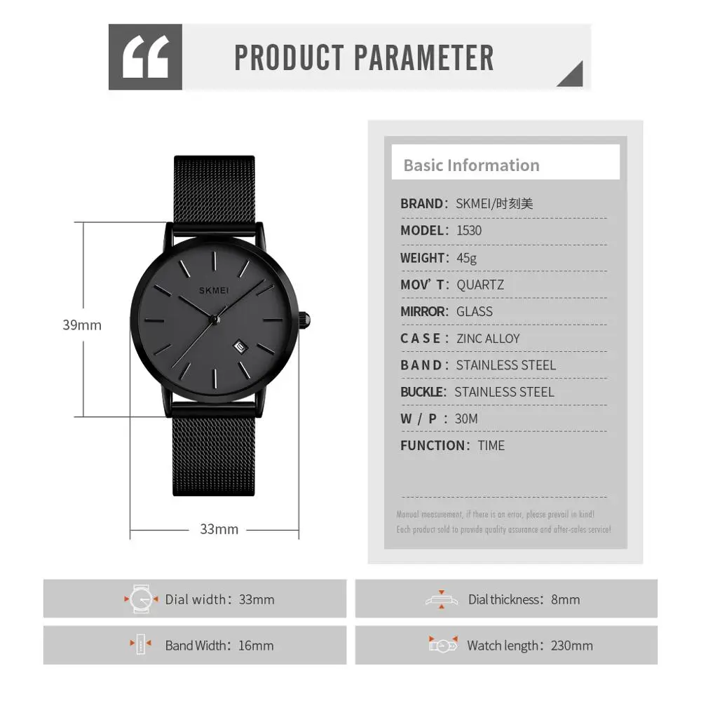 SKMEI модные женские часы повседневные кварцевые наручные часы в простом стиле 3 бар водонепроницаемые часы из нержавеющей стали reloj mujer 1530