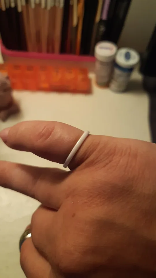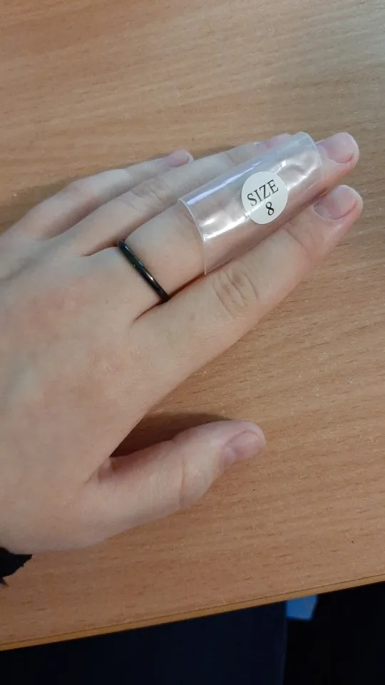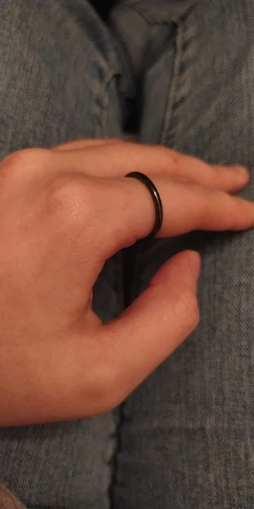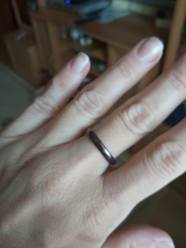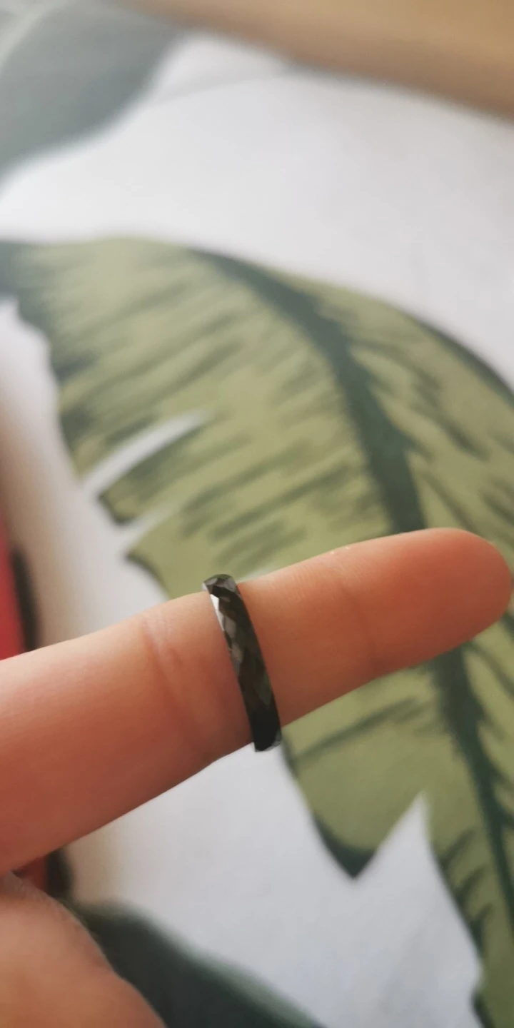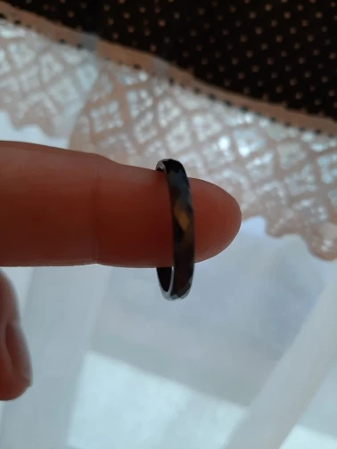Кольцо в целом хорошее, но описание не точное. Заказывала чёрное кольцо. Оно не 3мм, а тоньше чуток, для сравнения белое кольцо рядом, только от другого продавца. И чёрное кольцо оно не чёрное, а переливается и "дымчатый" цвет проявляется под разными углами, смотря как падает свет.