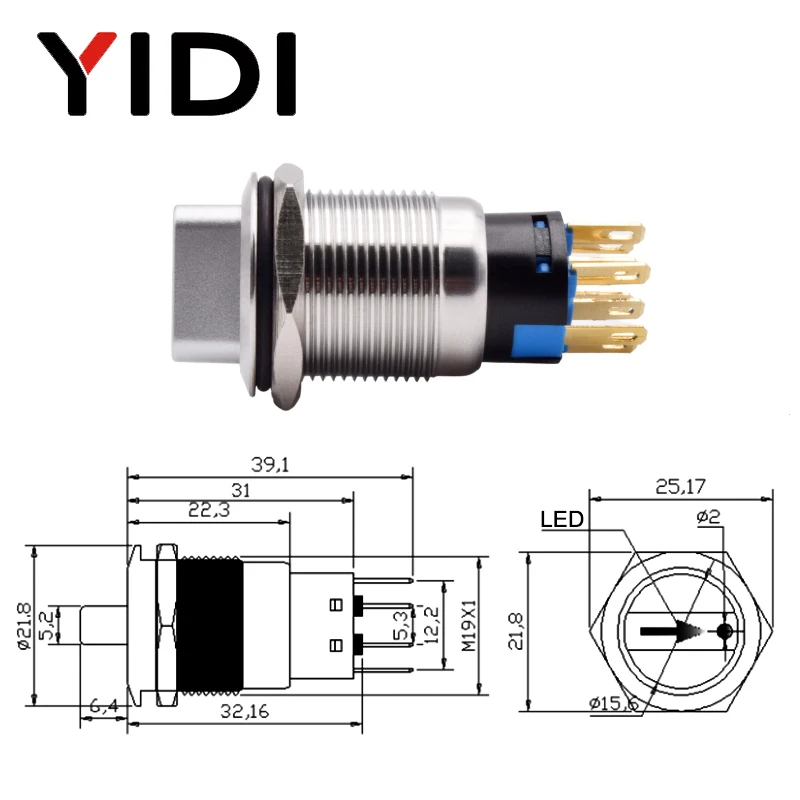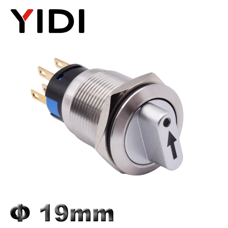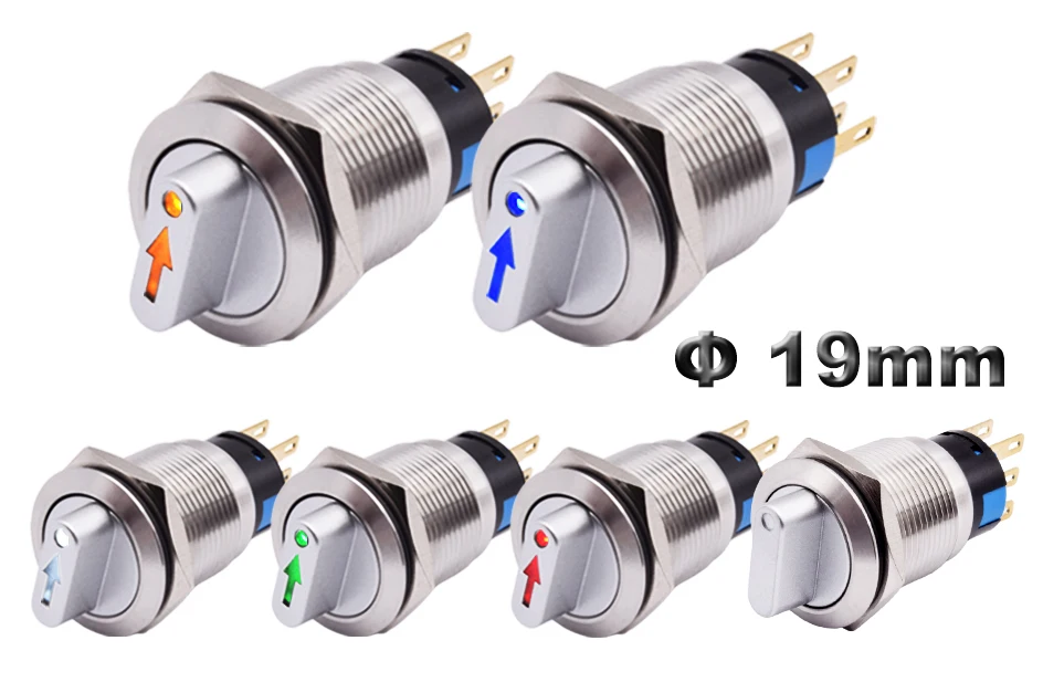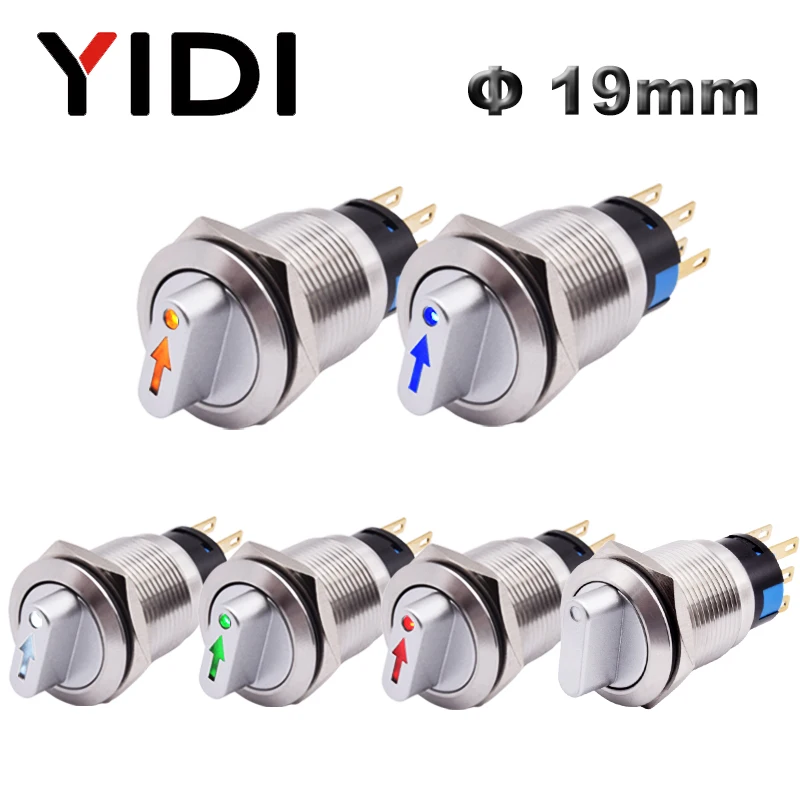 Металлический кнопочный переключатель с фиксацией Селекторный поворотный переключатель, 19 мм, 2, 3 положения, SPDT, с 12 В светодиодной подсветкой, 1NO1NC ВКЛ.ВЫКЛ.