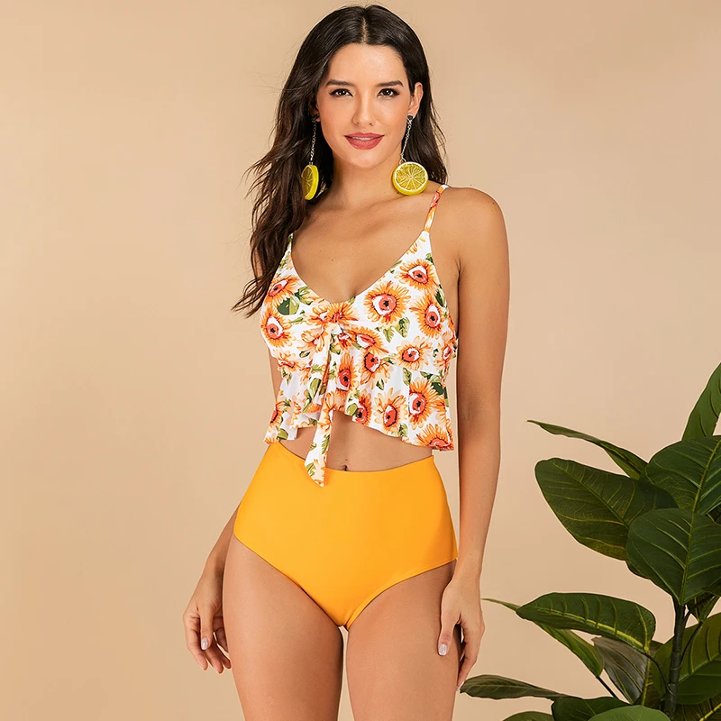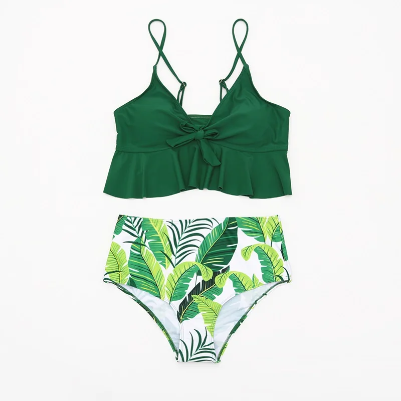 2021 сексуальное бикини с высокой талией, женский купальник с рюшами, винтажный комплект бикини в стиле ретро, размера плюс купальные костюмы, летняя пляжная одежда XXL