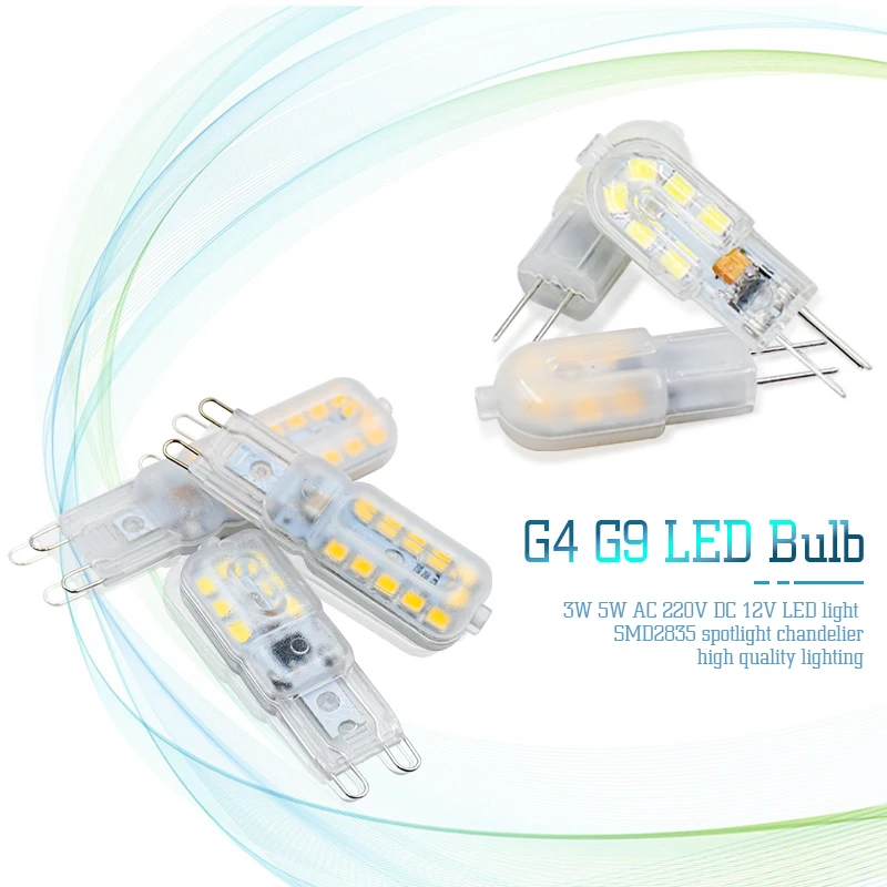 Светодиодная лампочка G4 G9 SMD2835 для точечного светильника, сменные Галогенные LED лампы для прожекторов и люстр, 5 шт.лот, 3 Вт, 5 Вт, 7 Вт, 220 В переменного тока, 12 В постоянного тока