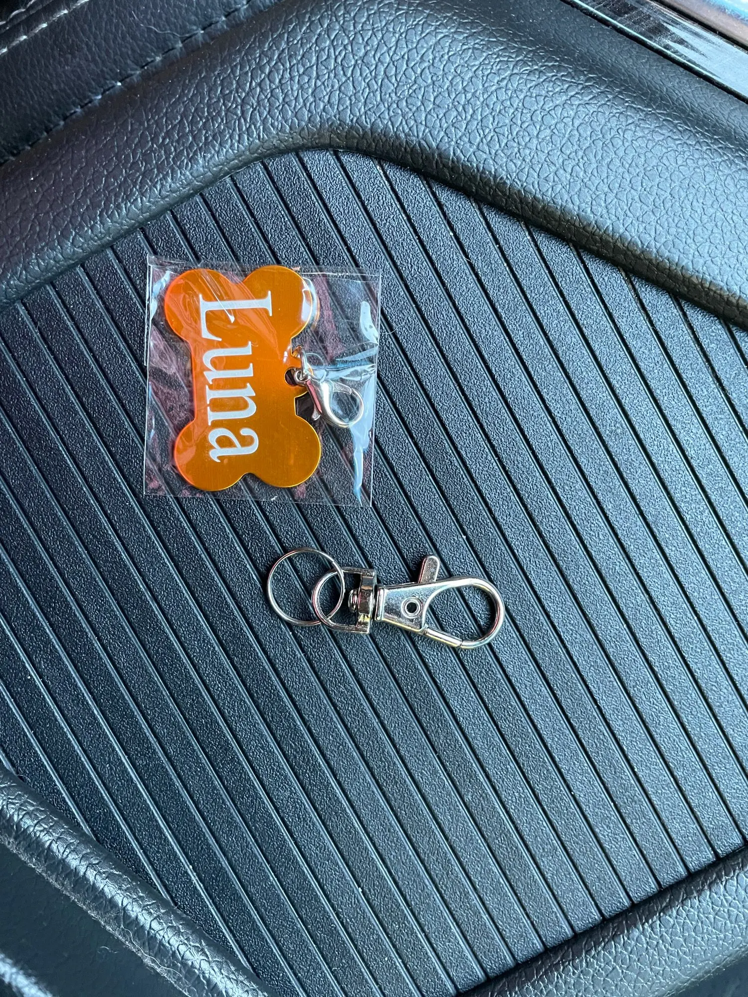 Perfecta y súper fácil la comunicación con el vendedor, haces la compra pones lo que quieres que t graben en un mensaje al vendedor dentro del pedido y hecha, en mi caso el nombre de mi perrita y dos números de teléfono, envío muy rápido