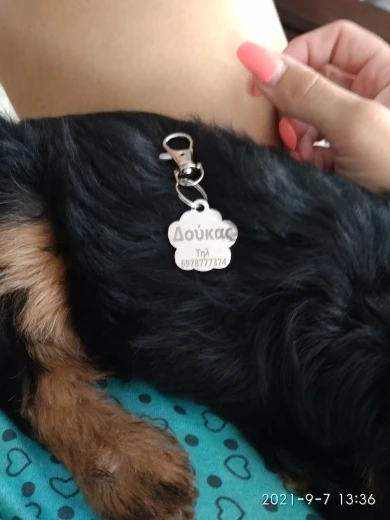 Идеальный продукт, продавец внимателен и взял идеальные данные. Это произошло быстро, менее 3 недель. Это очень хорошая тарелка, и она выглядит хорошо, я люблю, что моя собака носит ее в ее ожерелье.