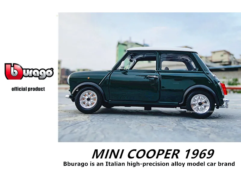 Bburago 1:24 1969 BMW Mini Cooper модель автомобиля из сплава Декоративные Коллекционные игрушки в подарок
