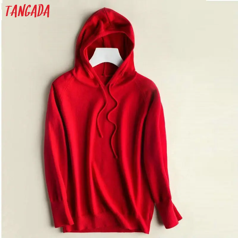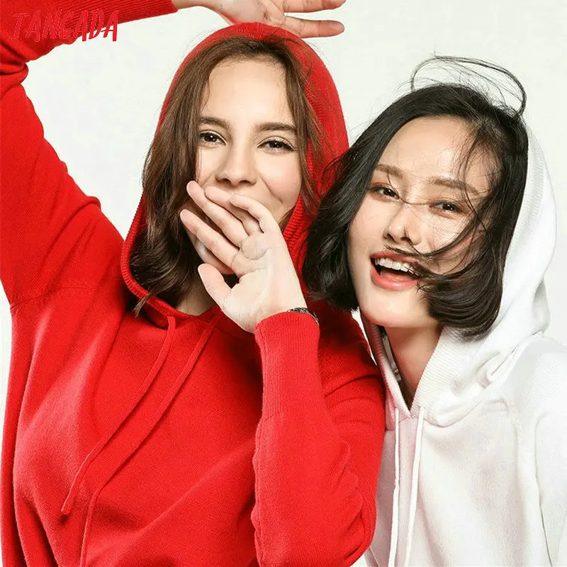 Tangada вязаная толстовка с капюшоном свитер с капюшоном джемпер с капюшоном теплый свитер теплый свитшот теплая толстовка вязаная толстовка с капюшоном желтая толстовка белая толстовка худи AQJ01