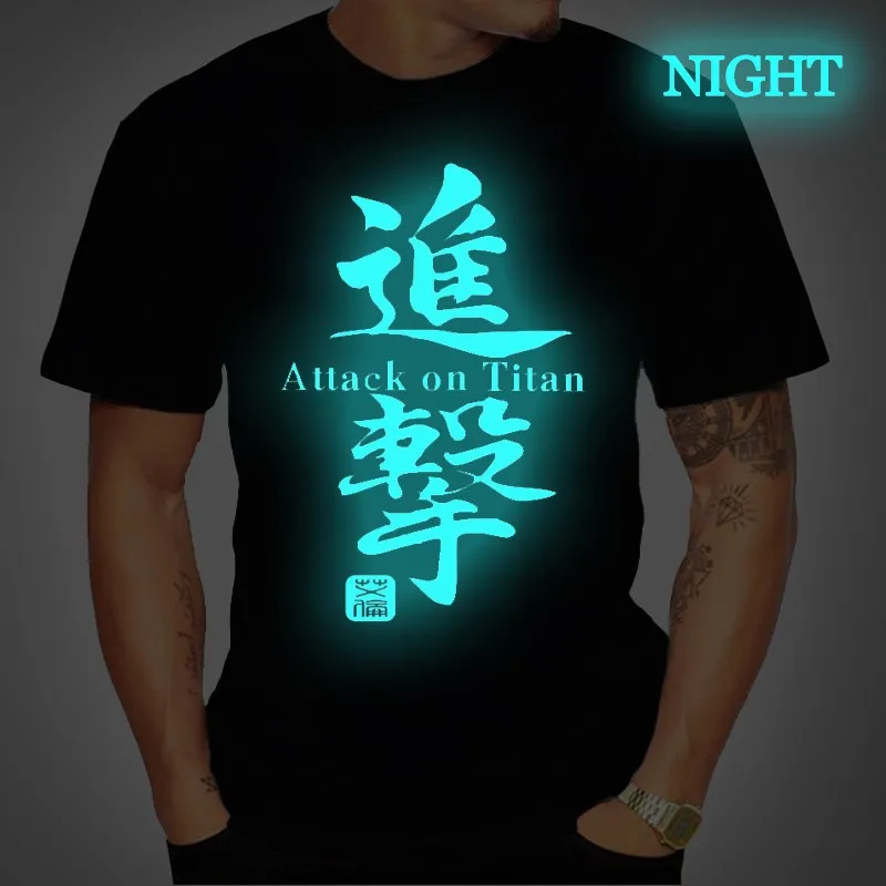 Аниме одежда атака на Титанов Эрен Мужская футболка лето футболки с коротким рукавом женские повседневные футболки уличная размера плюс светящаяся