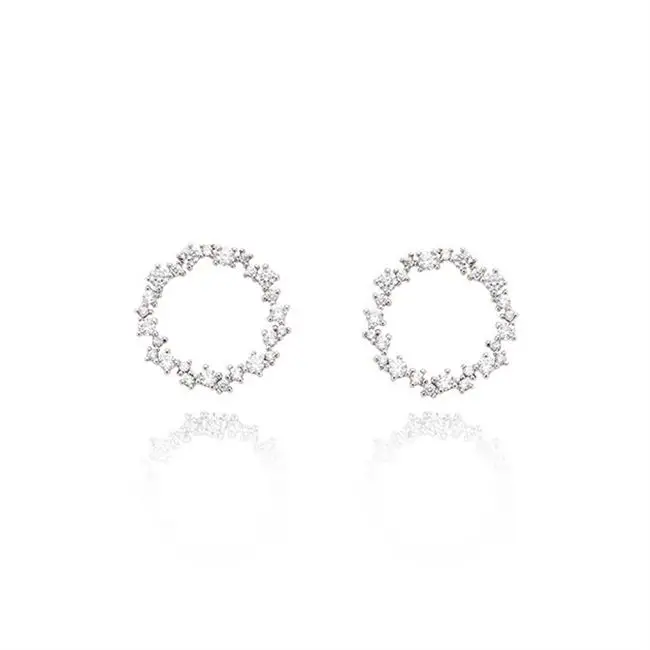 Круглые серьги-гвоздики, Стразы серебристого цвета с кристаллами