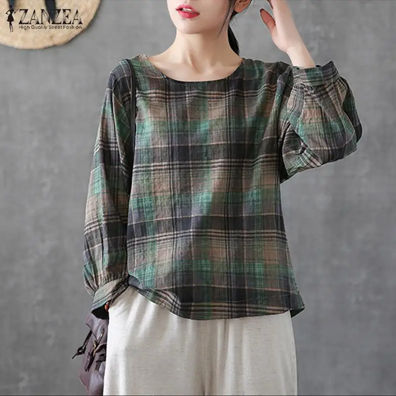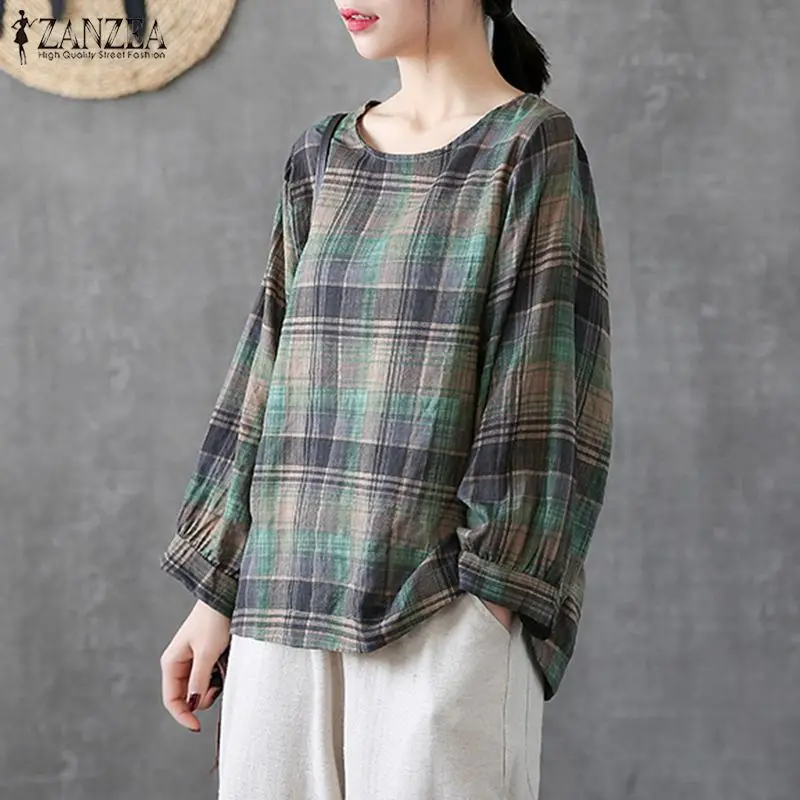 Женская блузка ZANZEA Женская Повседневная Свободная рубашка с длинным рукавом с принтом Blusas винтажная сорочка Женская Туника Топы Рабочие Рубашки большие размеры