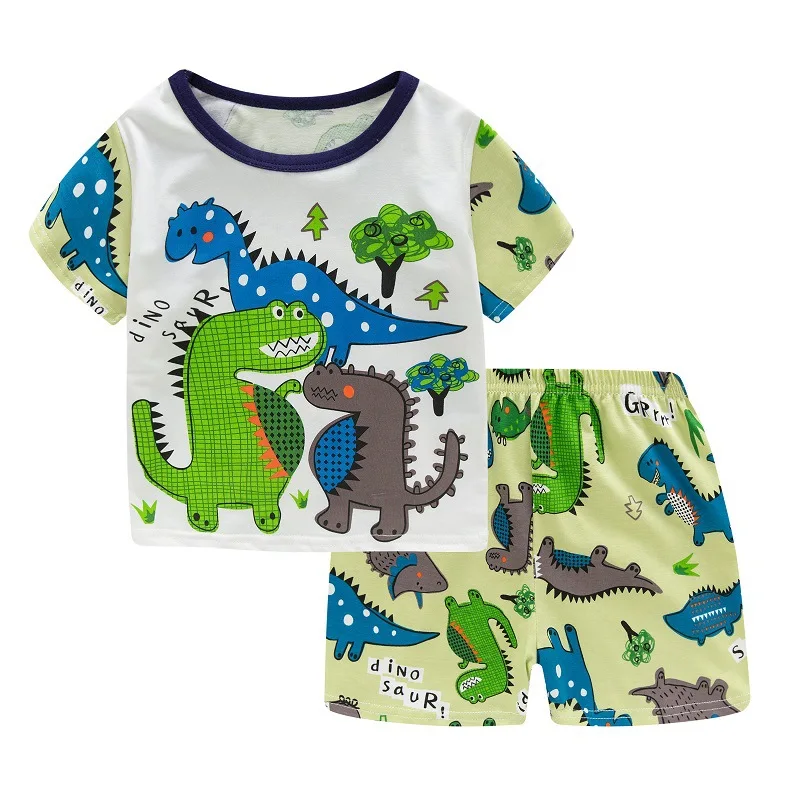 Детская летняя Пижама с мультяшным динозавром, Хлопковая пижама для мальчиков и девочек