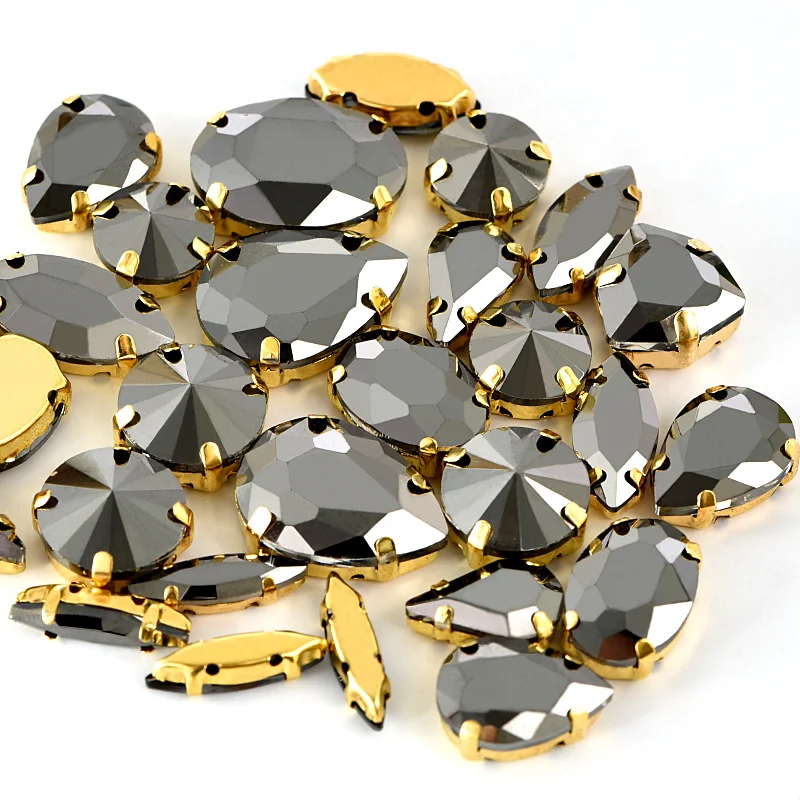 Гематит, высококачественный стеклянный кристалл, стразы для пришивания с кристаллом коготь, КАПЛЕВИДНАЯ пришивка на коготь, Стразы для одежды B3794