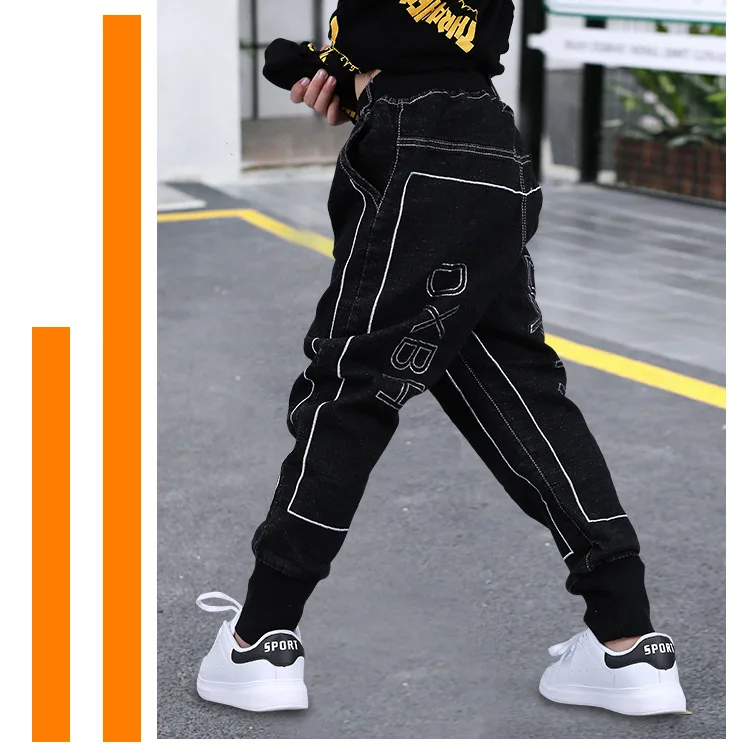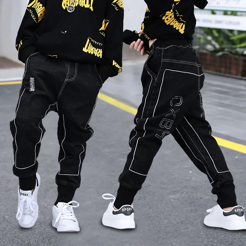 Брюки для мальчиков 3-13 лет, модные джинсовые штаны, хлопковые однотонные черные длинные штаны для подростков, одежда для малышей, на весну-осень