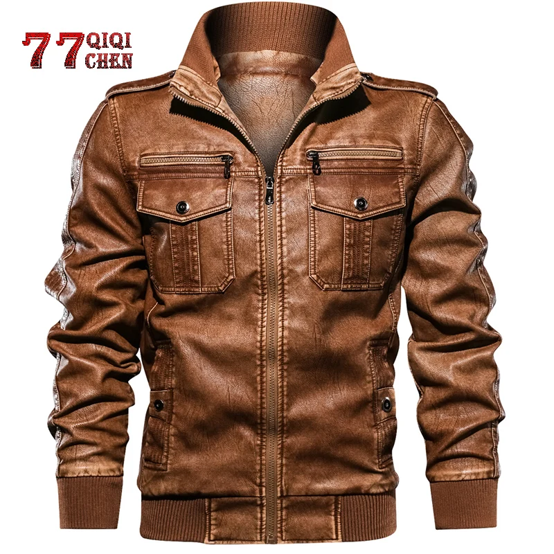 Мужская куртка из искусственной кожи в стиле милитари, повседневная мотоциклетная куртка с воротником-стойкой, пальто, американский Размер 2XL, 2021