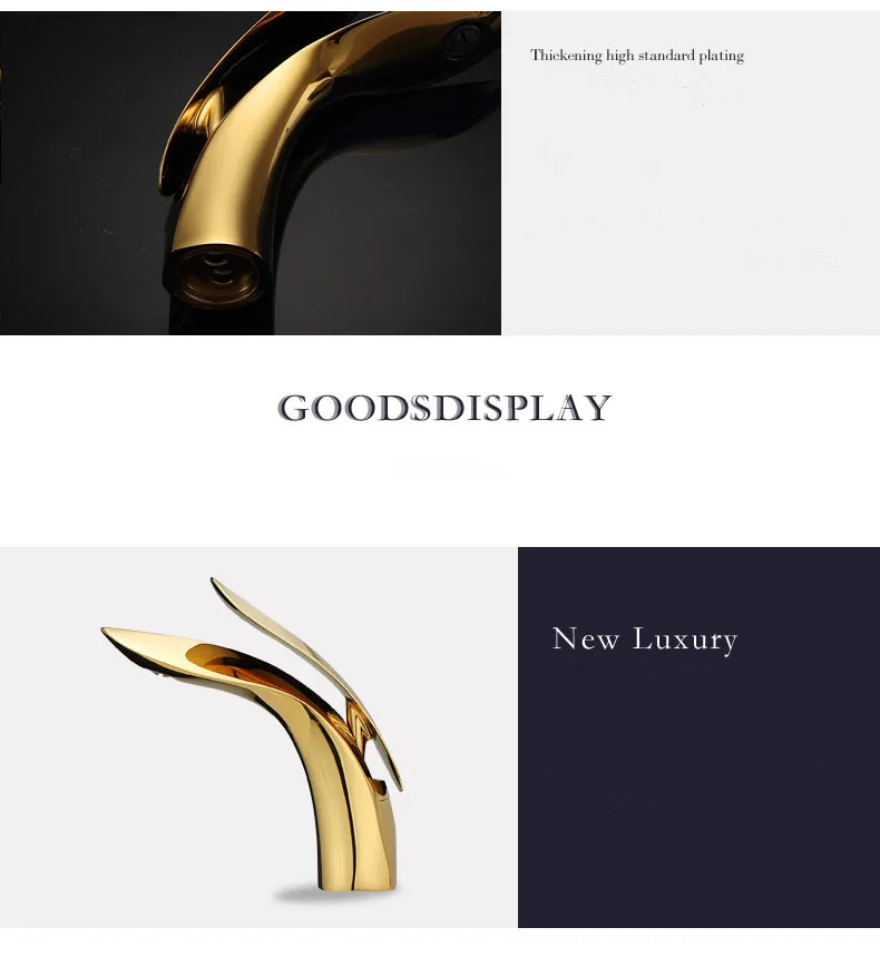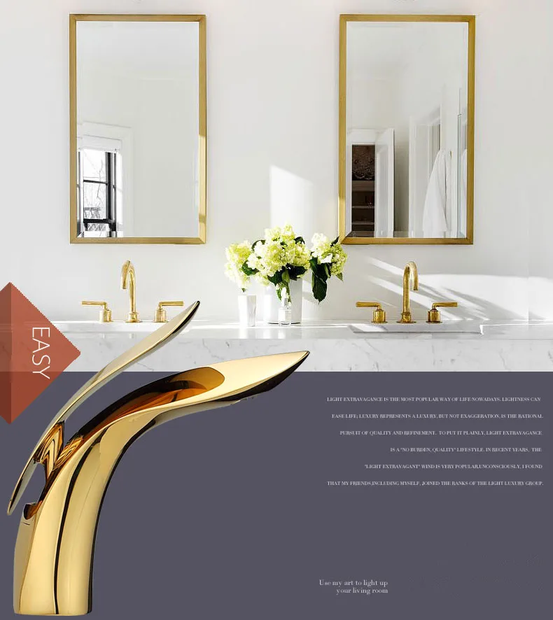Смесители для раковины ZGRK, элегантный смеситель для ванной комнаты, смеситель для раковины с горячей и холодной водой, латунный Смеситель для раковины с золотой отделкой