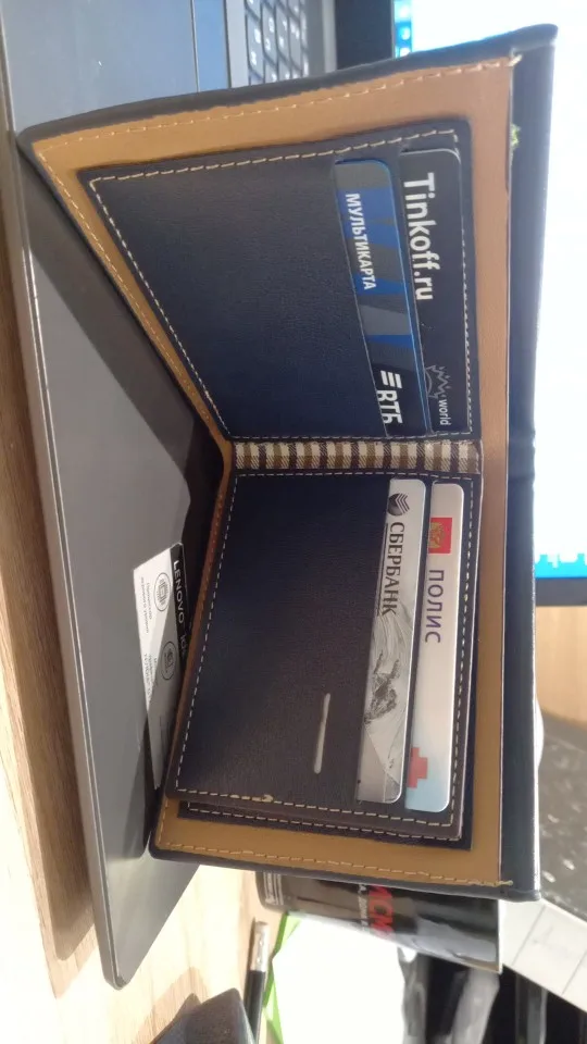 За такую цену - отличный кошелёк, куча отделений для банковских и дисконтных карт, приятный материал.