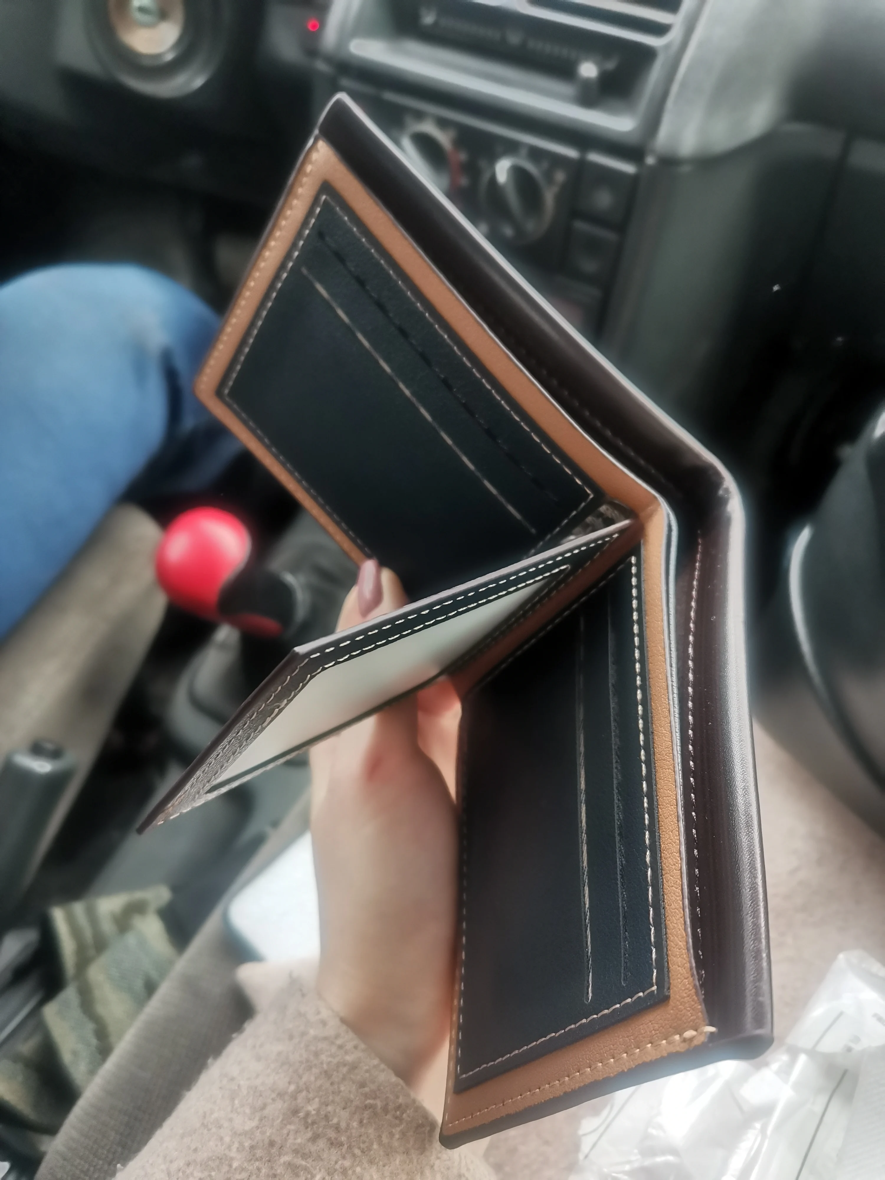 Кошелёк очень качественный, вместительный и без браков,не имеет неприятного запаха,пришёл очень быстро,брала в подарок,именинник был рад.