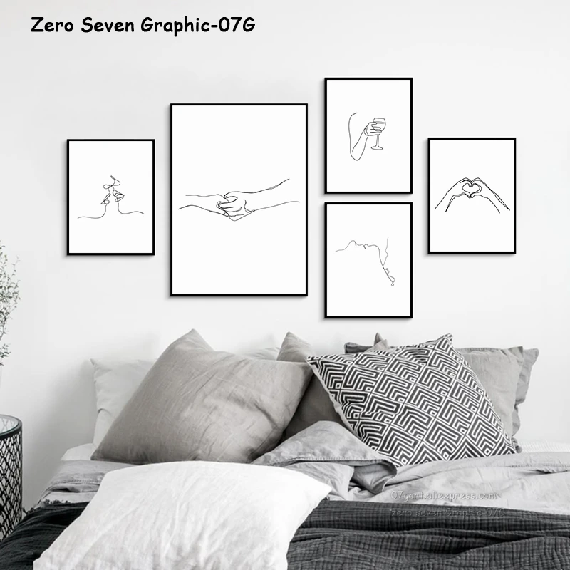 Абстрактная живопись, одна линия, искусство, рисование, цветок, поцелуй, сердце, холст, живопись, настенные картины, плакат и печать для украшения дома