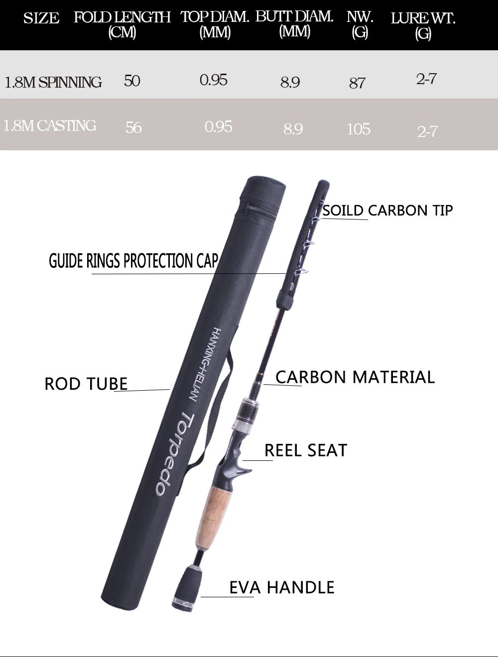 Телескопическая удочка UL, 1,8 м, карбоновое спиннинговоелитейное удилище, сверхлегкое портативное удилище с трубкой для ловли форели и щуки