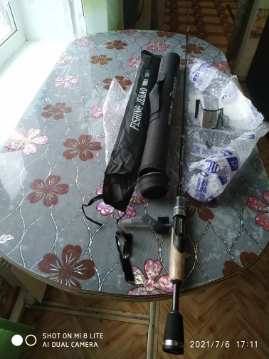 Спининг отличный. Легкий, не лапша. На воде не пробовал. до Владимирской обл. за три недели дошла посылка.