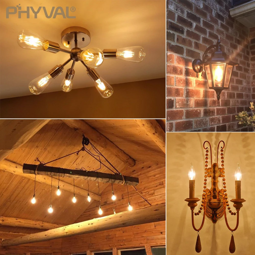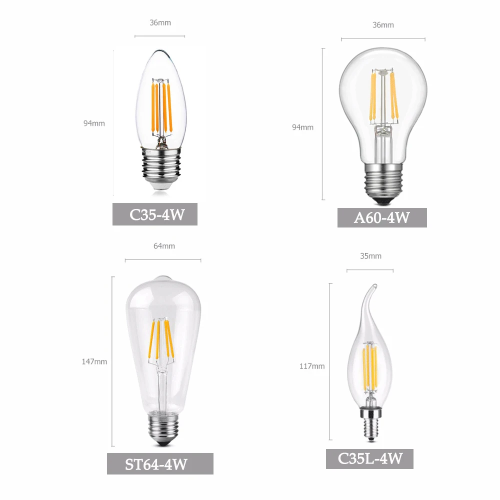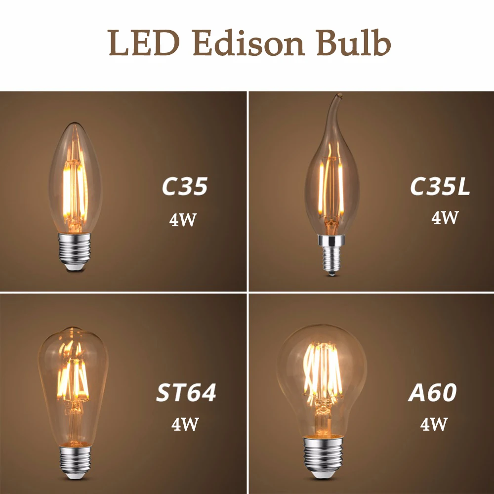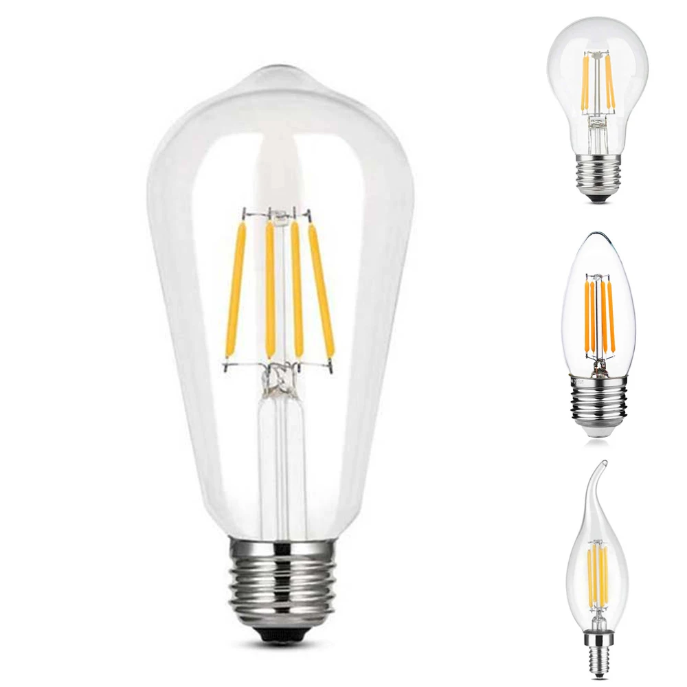 Светодиодная лампочка эдисона E27E14, винтажная прозрачная стеклянная Энергосберегающая лампочка 220 В 4 Вт ST64 C35 C35L A60
