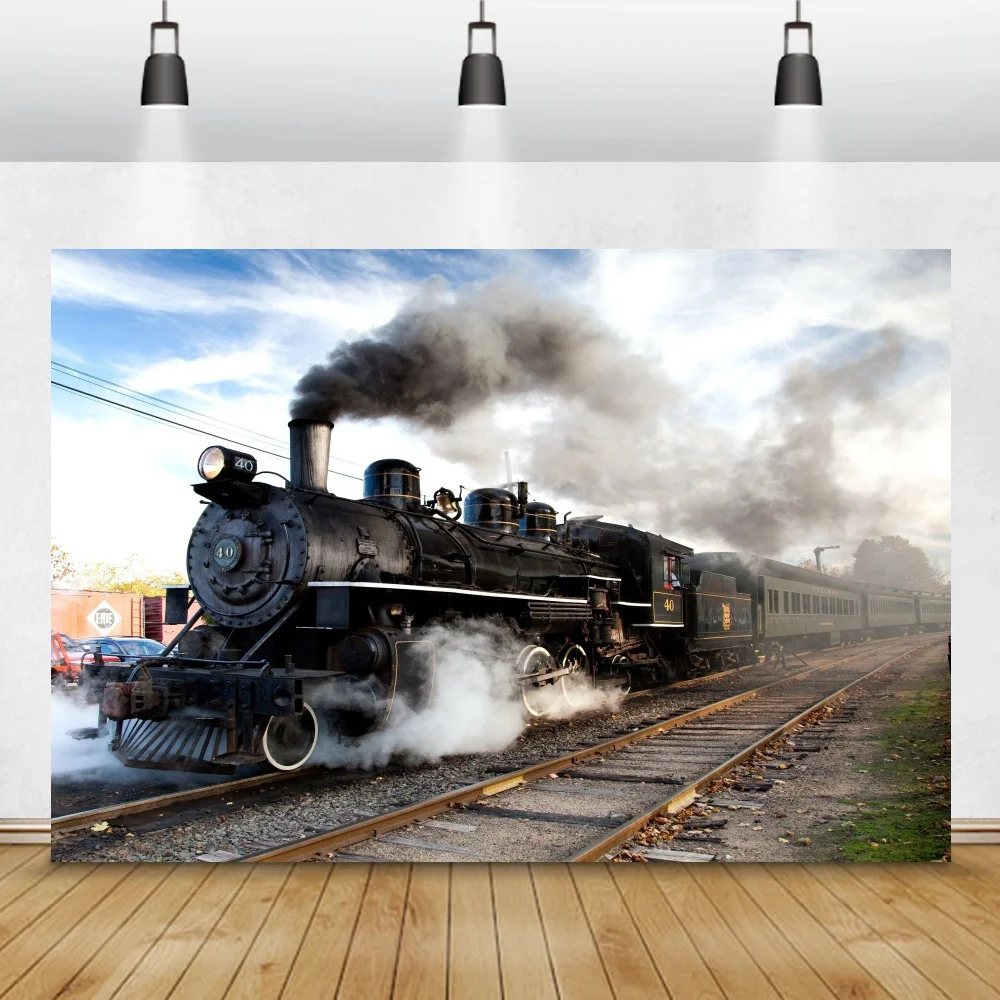 Виниловый фон Laeacco для фотосъемки с изображением старого темного паровоза поезда и дыма фотосессия Фотостудия