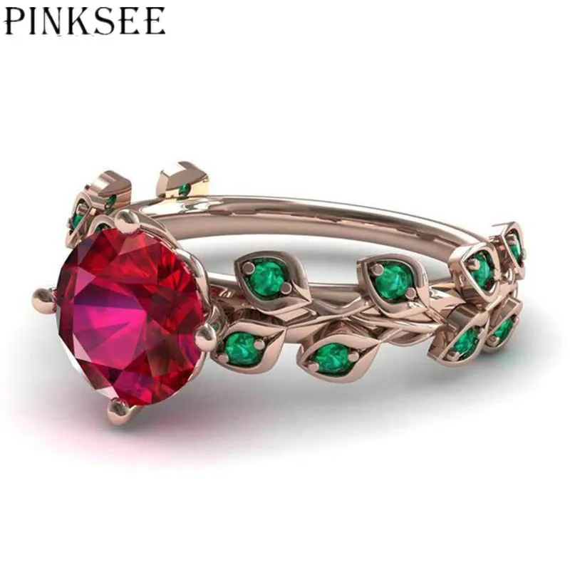Элегантные перстни PINKSEE с цирконом, с зелеными листьями, для женщин, украшения для вечерние