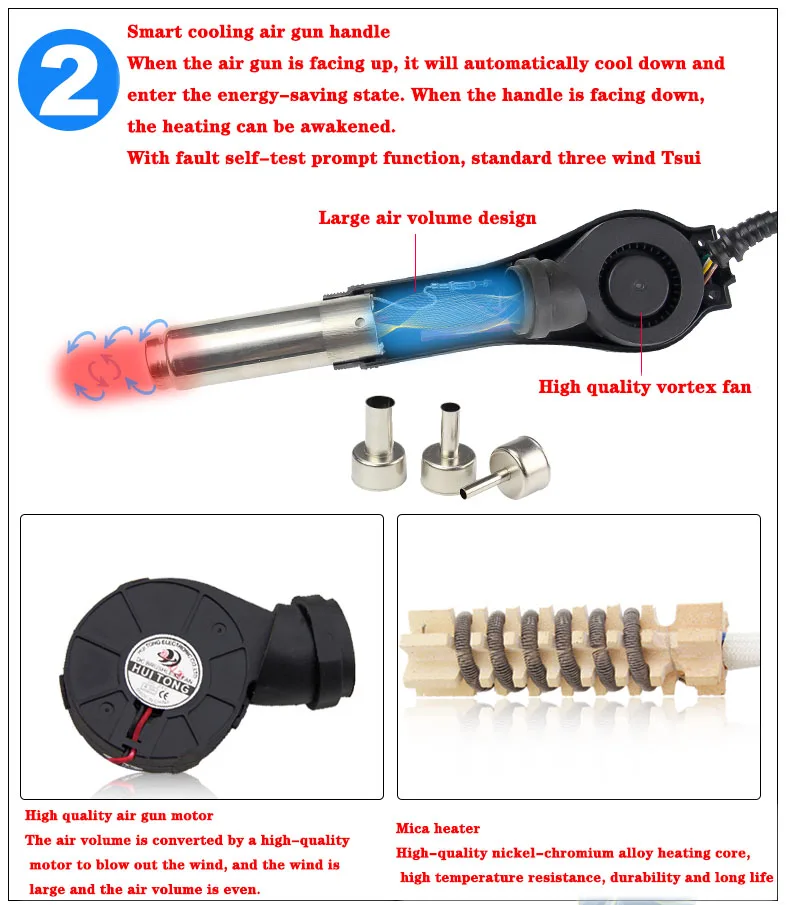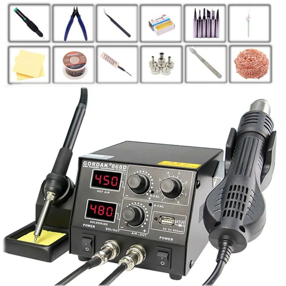 Паяльная станция GORDAK 868D 3 в 1, интеллектуальный цифровой антистатический пистолет с горячим воздухом, зарядка через USB, мобильный телефон