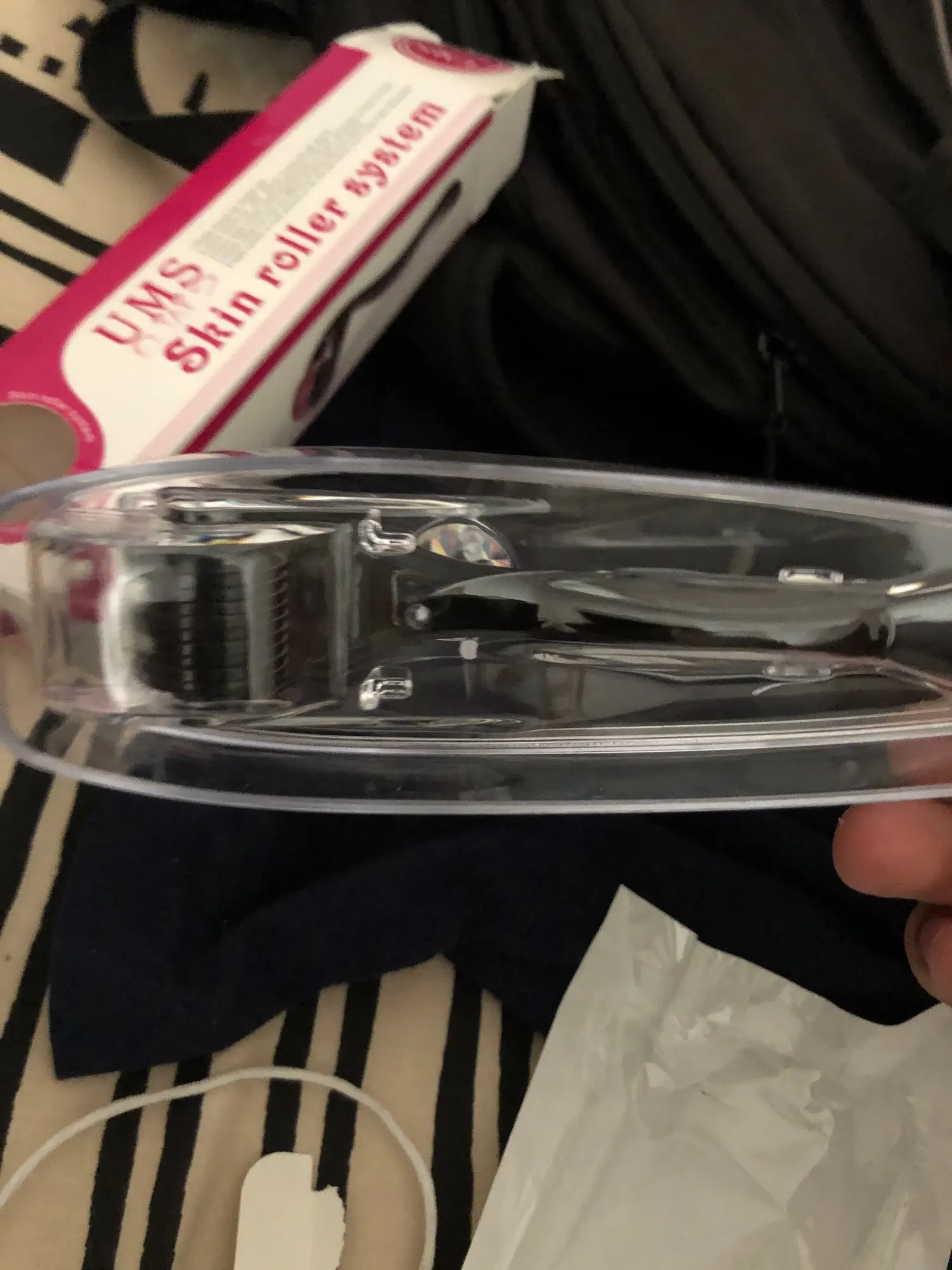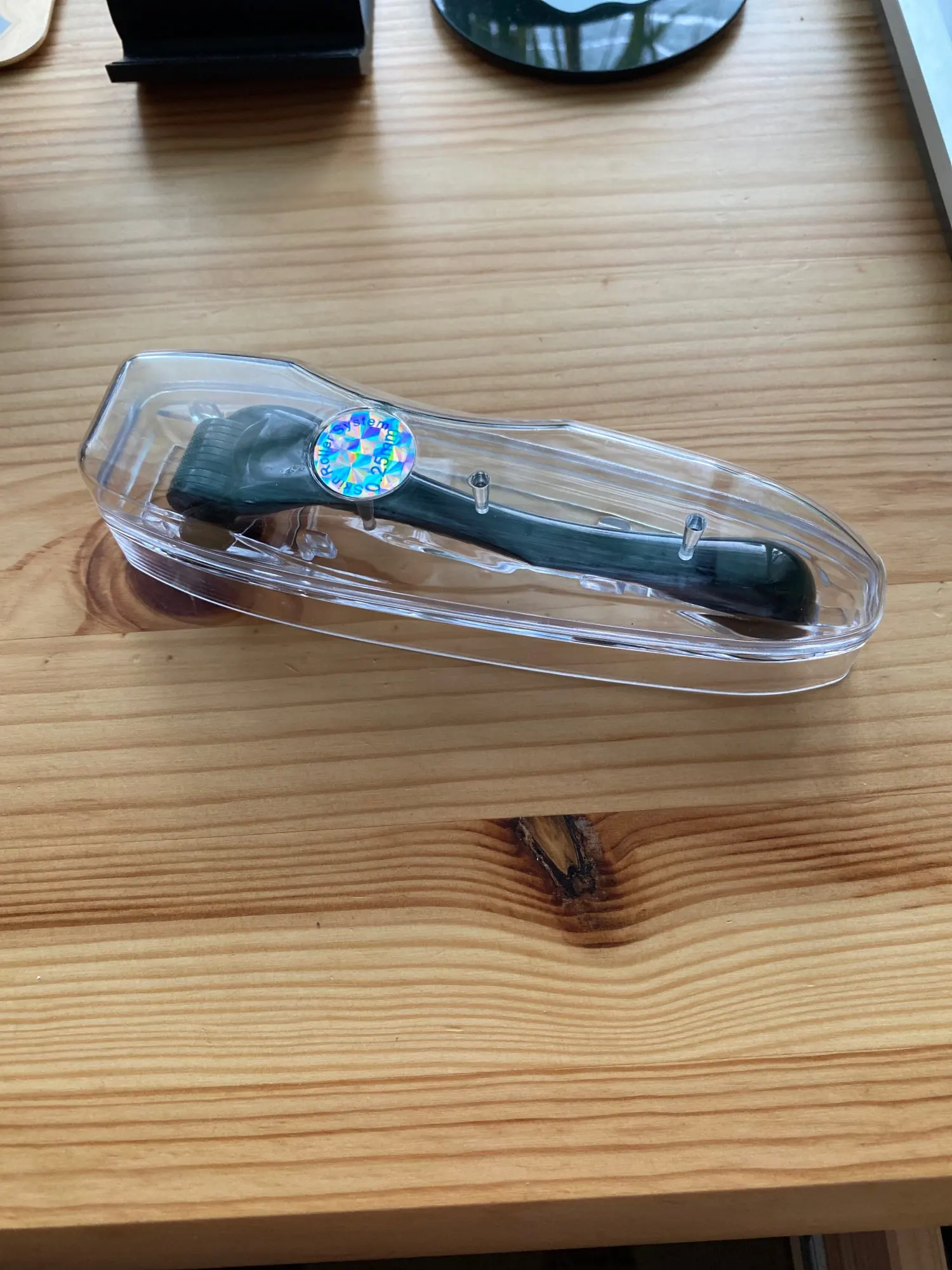 Посылка пришла через месяц. Внутри всё целое, в пластиковом корпусе. Роллер тоже ровный. Просто поводил по коже и спустя минуту начало ощущаться жжение. Но надо дополнять ещё сыворотками и т.д. смотря для каких целей приобретаете. Штука интересная!
