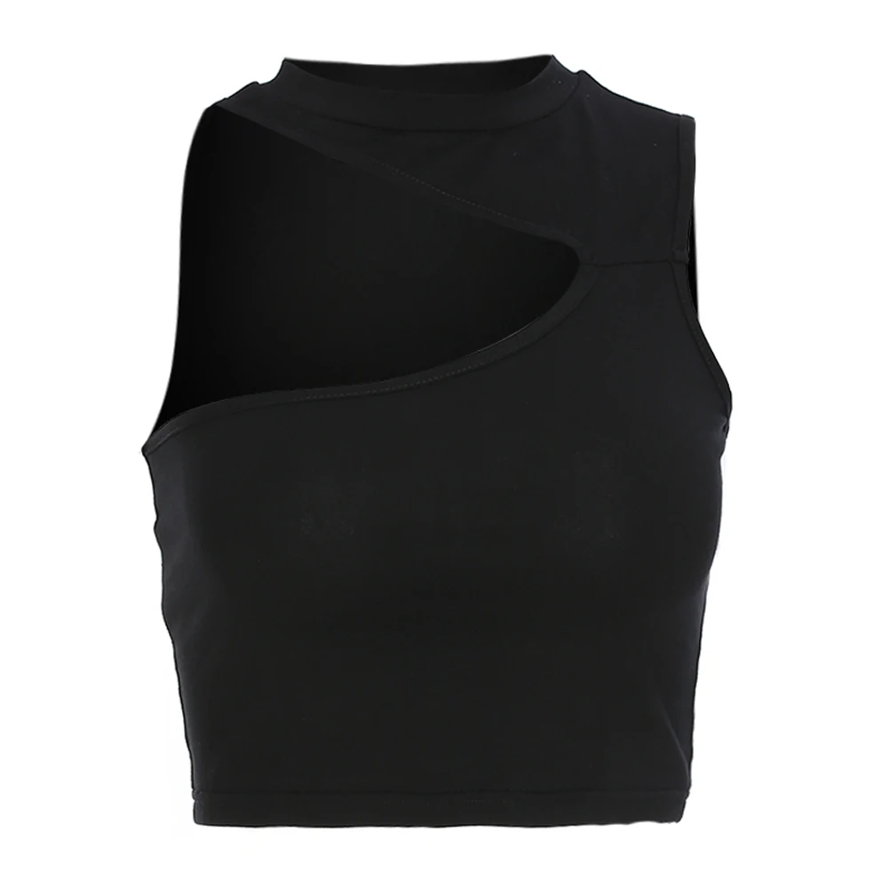 Новое поступление 2019, летняя пикантная женская летняя майка без рукавов для девочек, укороченный топ на одно плечо, блузка, повседневные облегающие черные майки, Лидер продаж