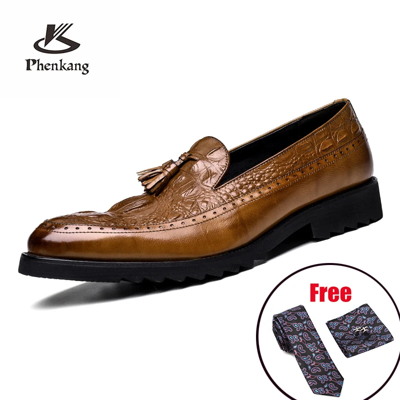Мужские кожаные туфли Phenkang, туфли-оксфорды из натуральной кожи для мужчин, роскошные свадебные туфли обувь слипоны, Кожаные броги 2020