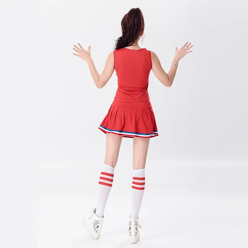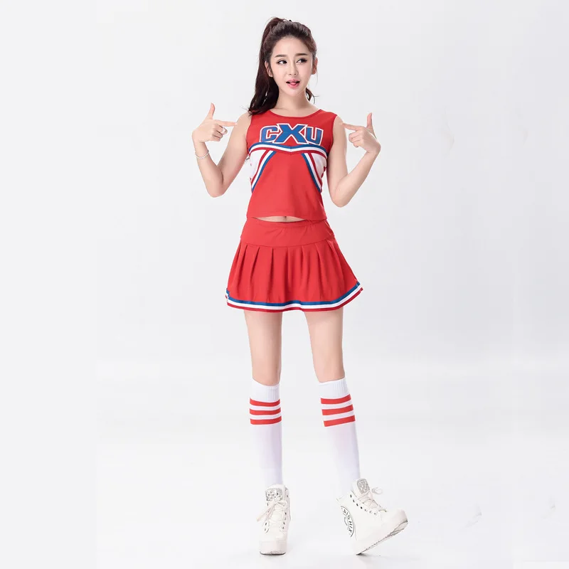 Бесплатная доставка; Леггинсы для девочек болельщик равномерный Школьный костюм для девочек, полный комплект одежды, нарядное платье, костюм топ + юбка 2 шт. 2 цвета S-2 XL