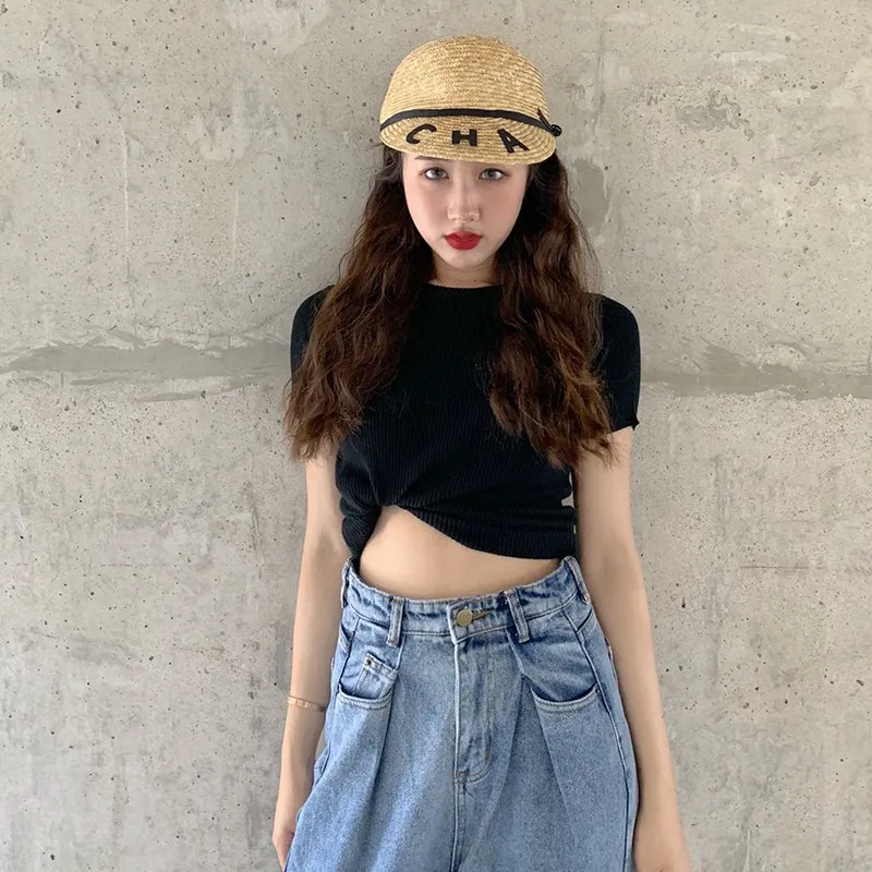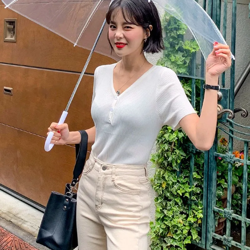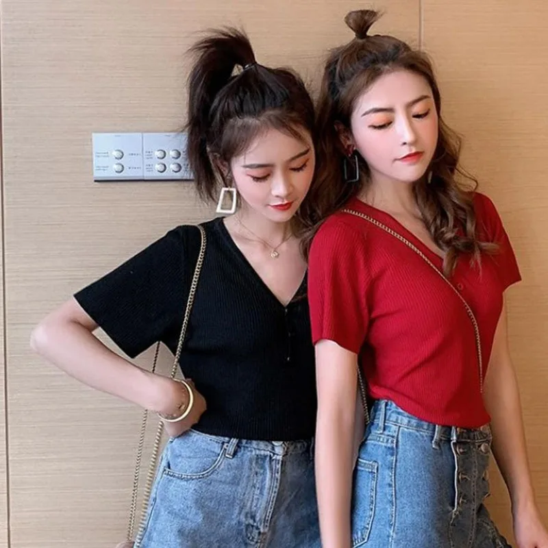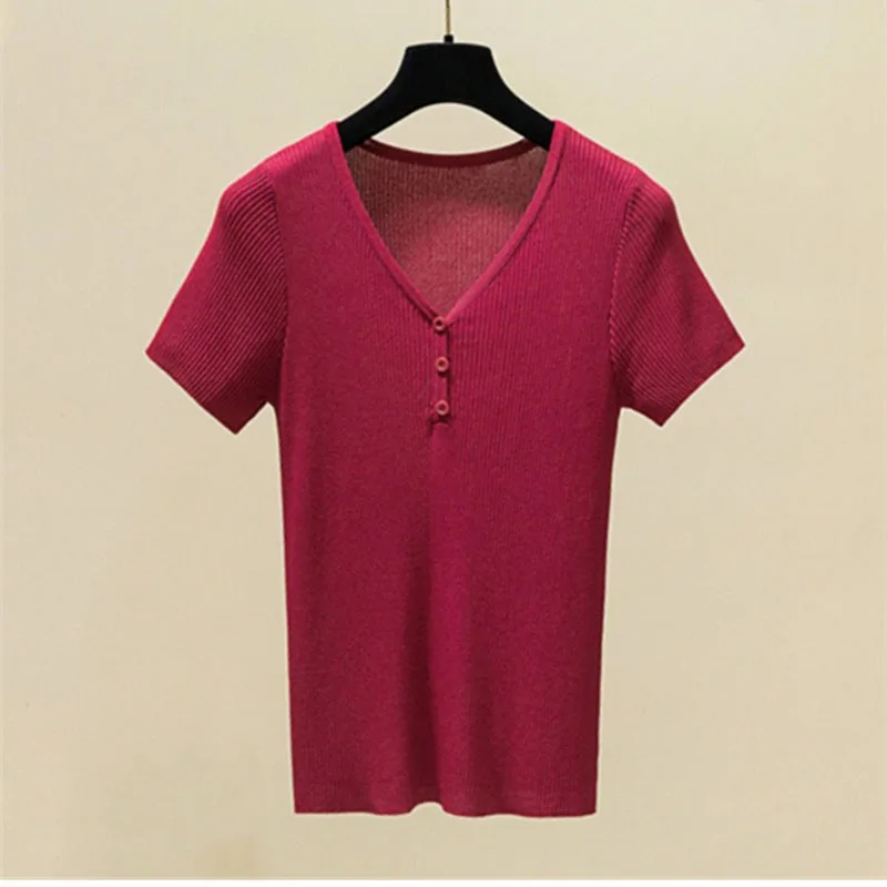 Женская тонкая трикотажная футболка с коротким рукавом, летняя Однотонная футболка, модная повседневная простая футболка в Корейском стиле, женская одежда