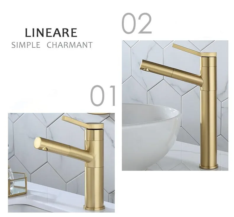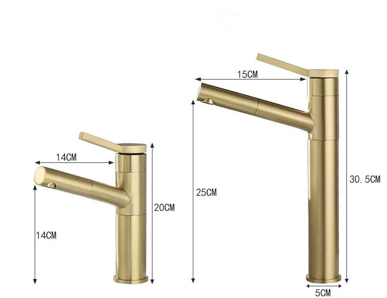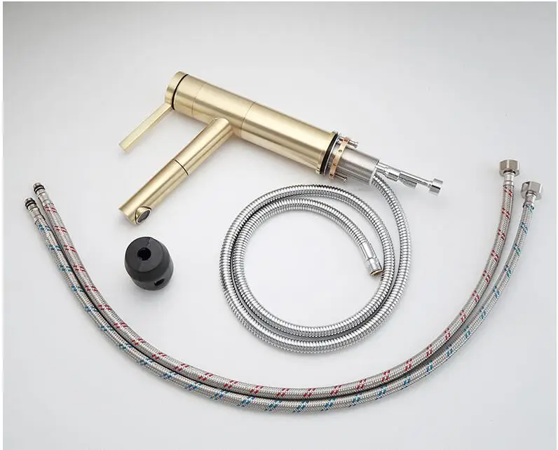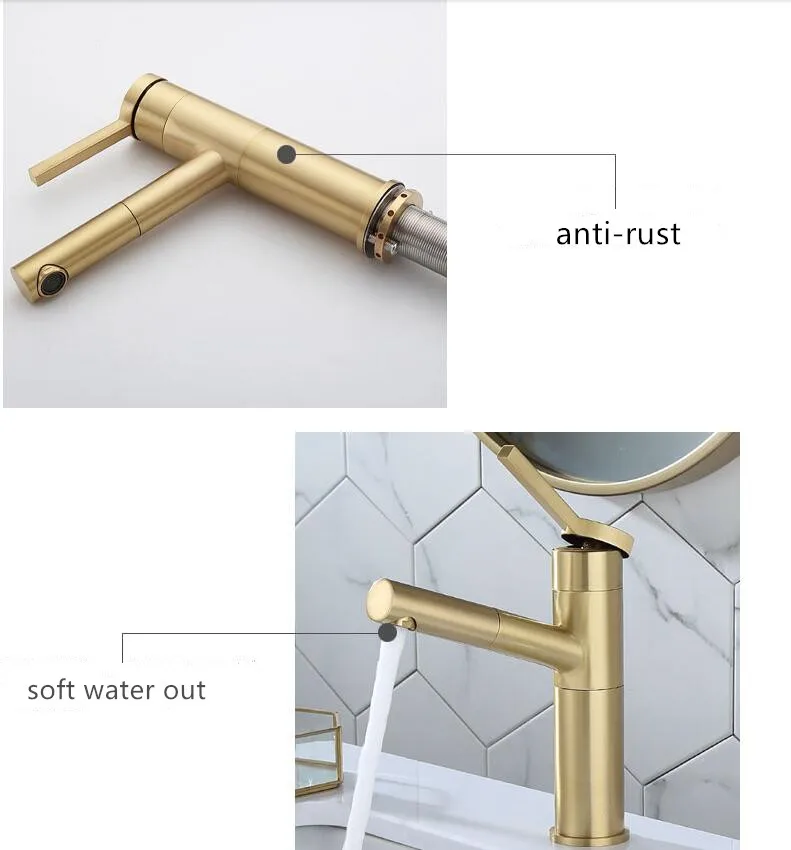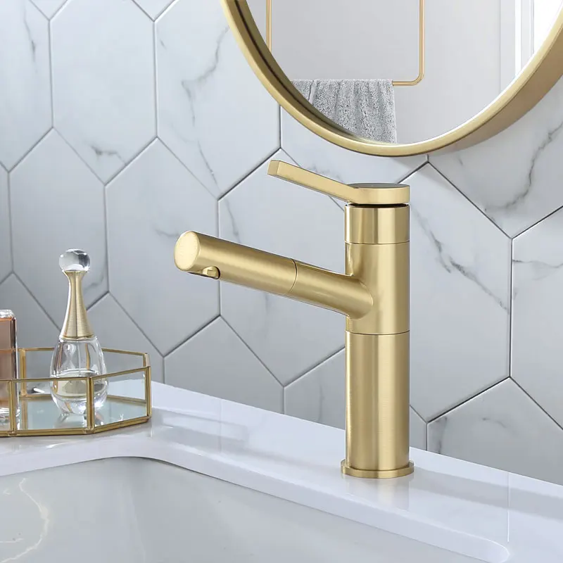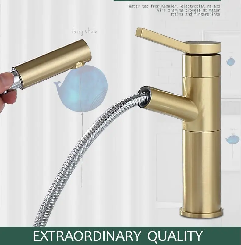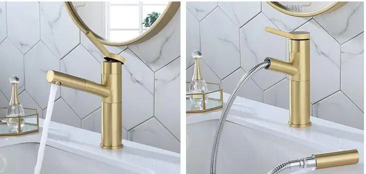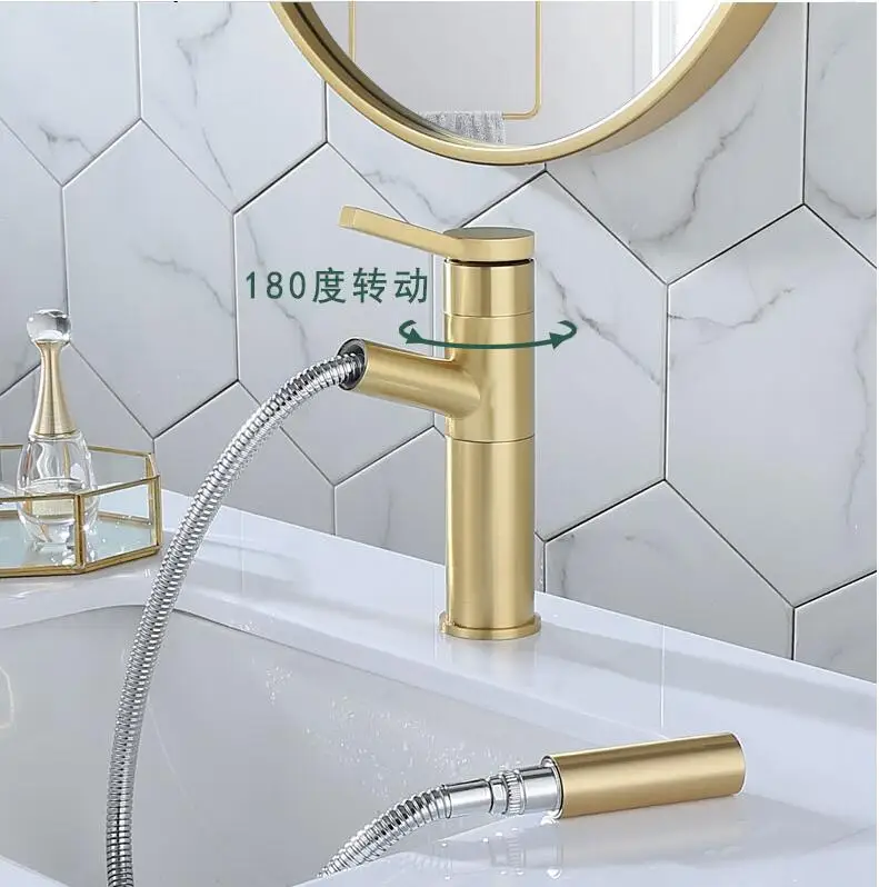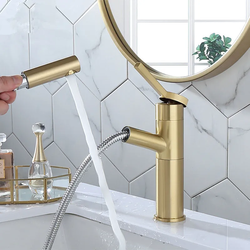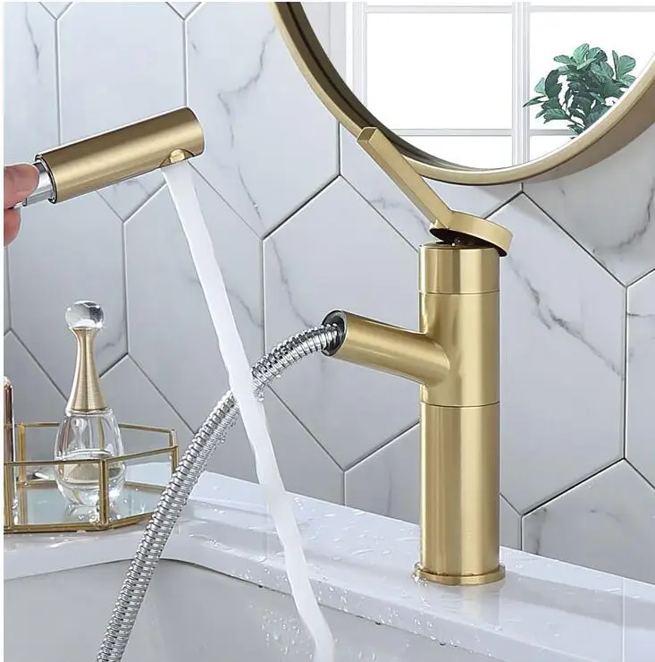 Вытяжной смеситель для ванной комнаты, смеситель для раковины с насадкой для душа, смеситель для раковины с одной ручкой, установленный на палубе, матовый золотой кран