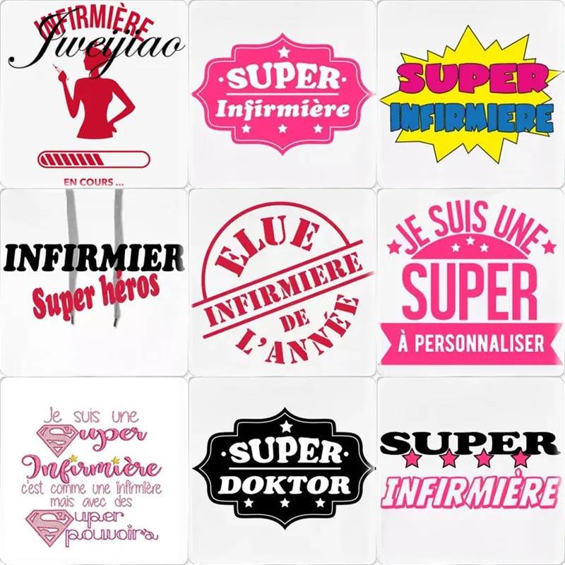 JWEIJIAO 5 шт./лот 12 мм квадратная форма супер infirmiere стеклянный кабошон DIY французские буквы ювелирные изделия для сережек гвоздики аксессуары