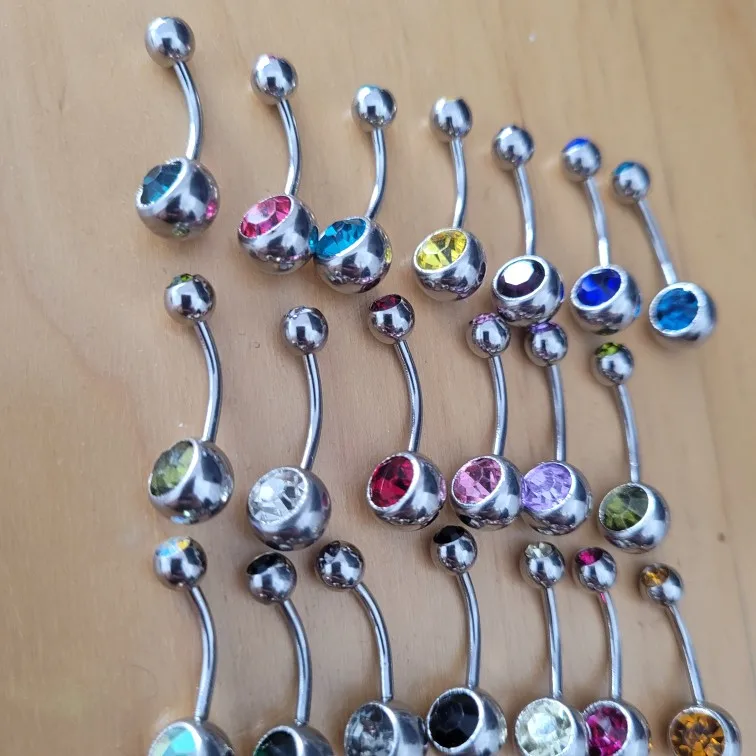 Кольцо для пирсинга пупка, из хирургической стали, со стразами, 5101520 шт.лот