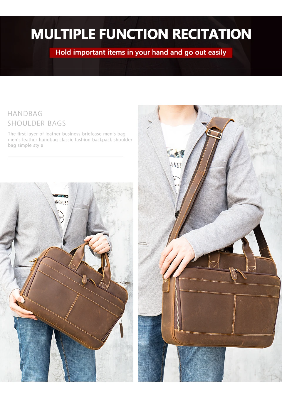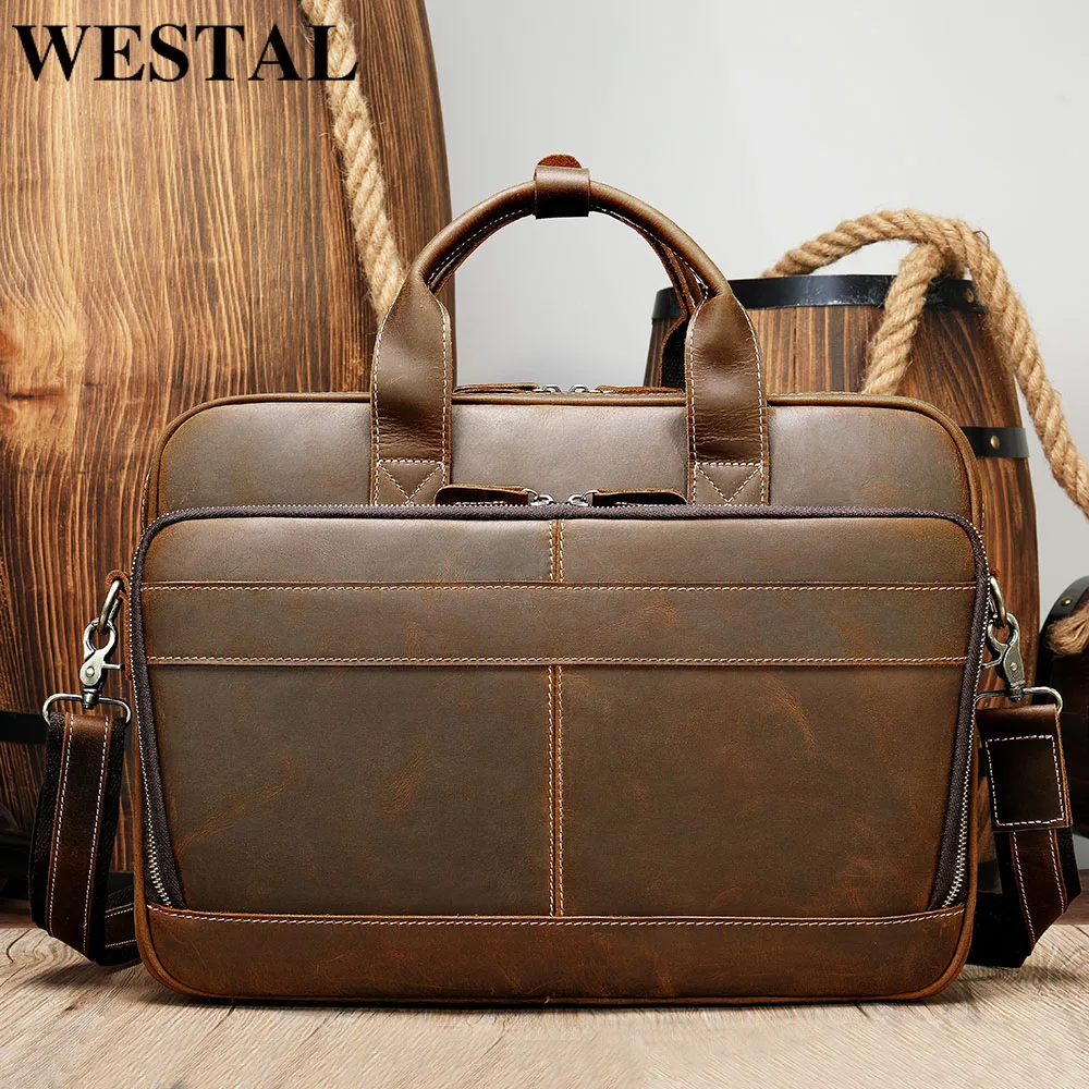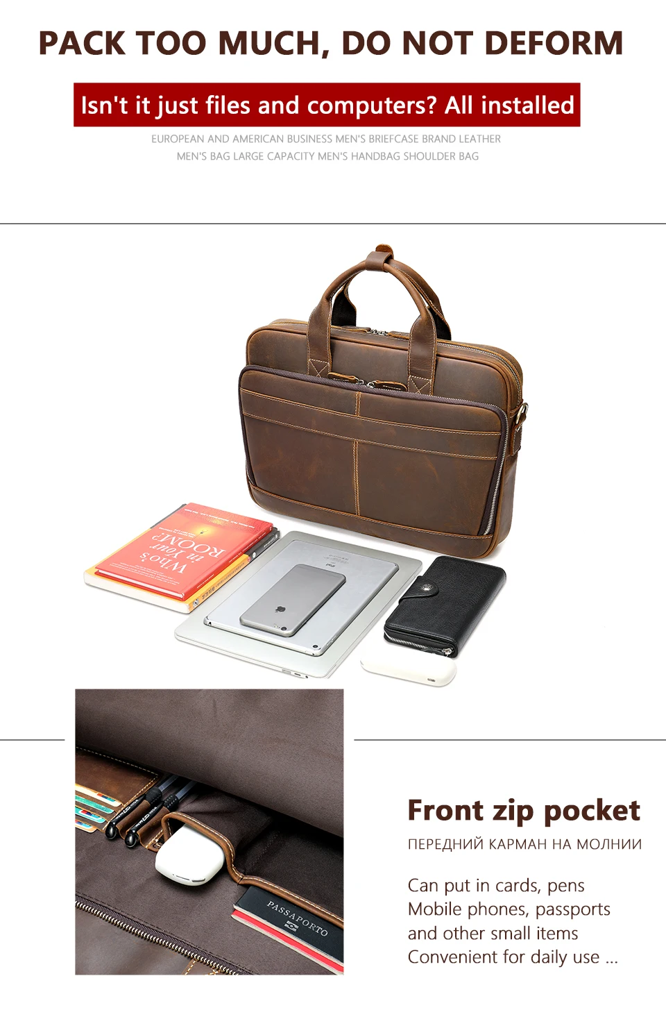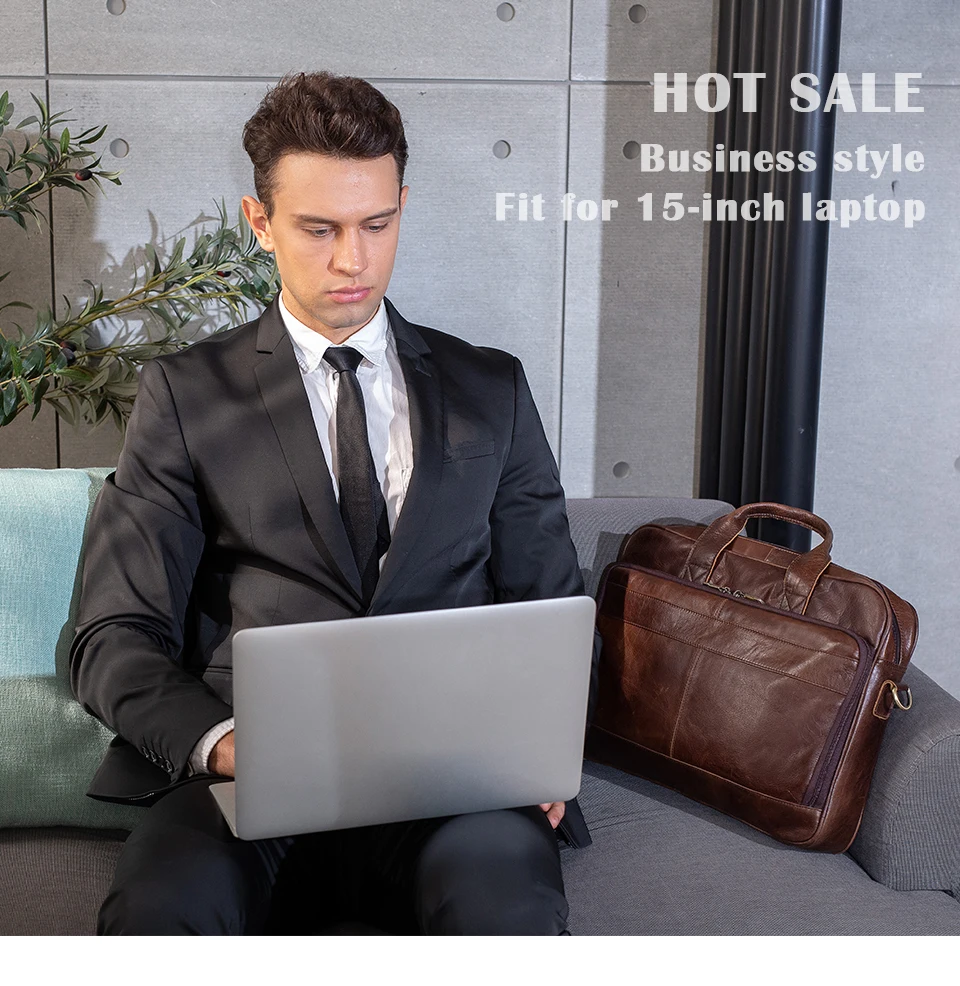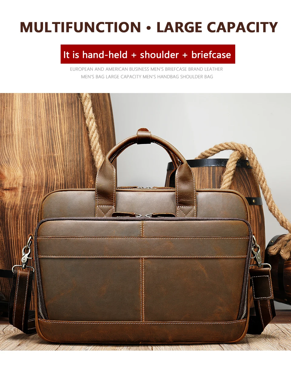 Сумка-мессенджер мужская из натуральной кожи, для ноутбука 15 дюймов, 8841
