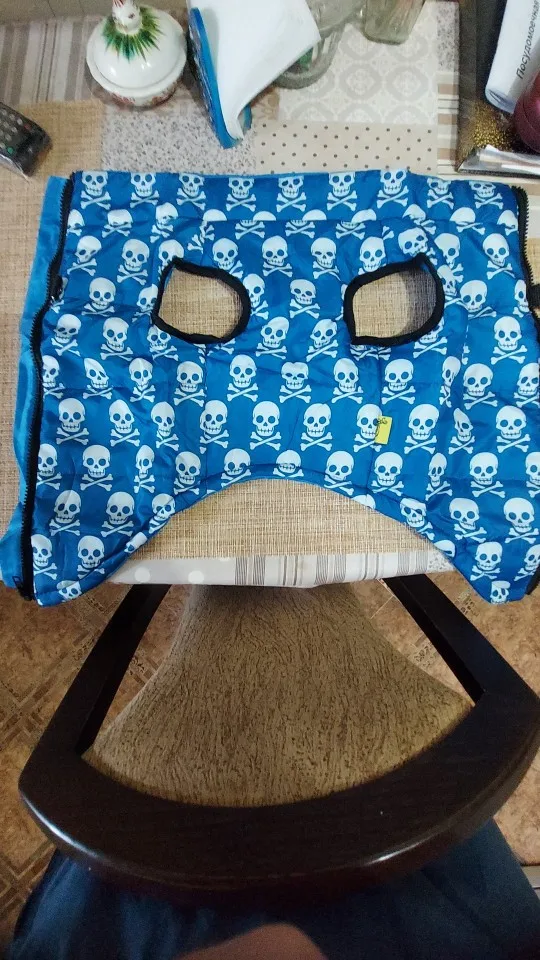 Качество вроде хорошее нитки не торчат молния работает. На немецкого шпица села хорошо по размерной сетке. Ожидала что будет по плотнее немного. А так внутри пустовато набито.