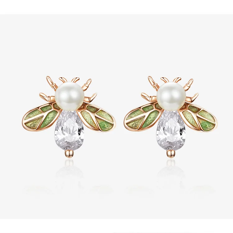 Серьги женские из серебра гвоздики Пчелка пробы, с пресноводным жемчугом и фианитами, 100%, CQE643