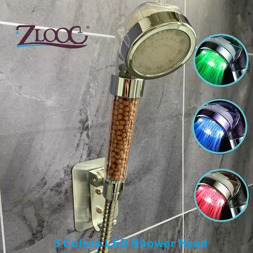 Насадка для душа Zloog со светодиодной подсветкой, меняющая цвет, без аккумулятора, автоматический ионный фильтр, каменная насадка для душа
