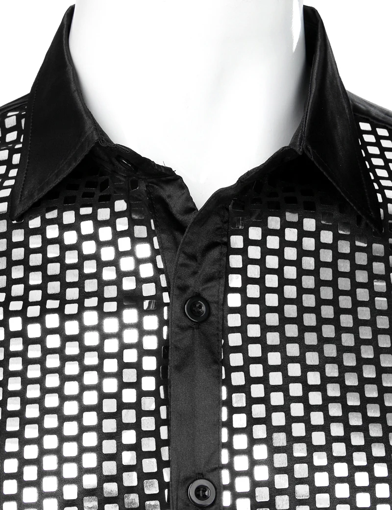 Мужская атласная рубашка с блестками, черная шелковая рубашка с длинным рукавом, на пуговицах, для дискотеки, выпускного вечера, клуба, вечеринки, костюм, 2019