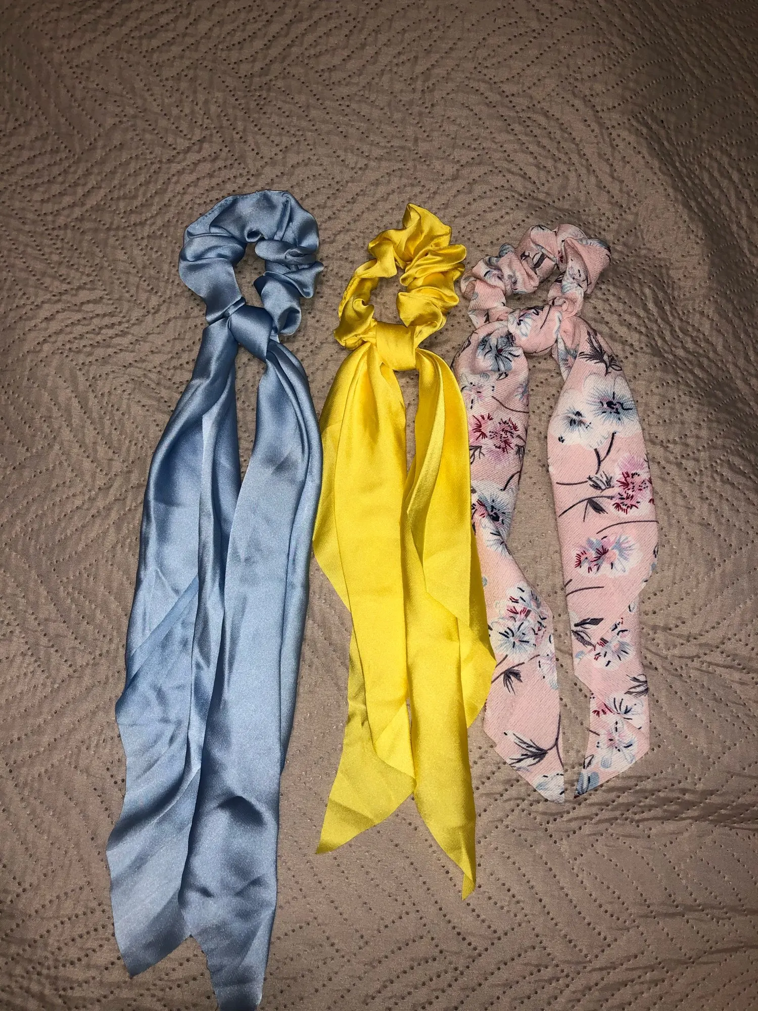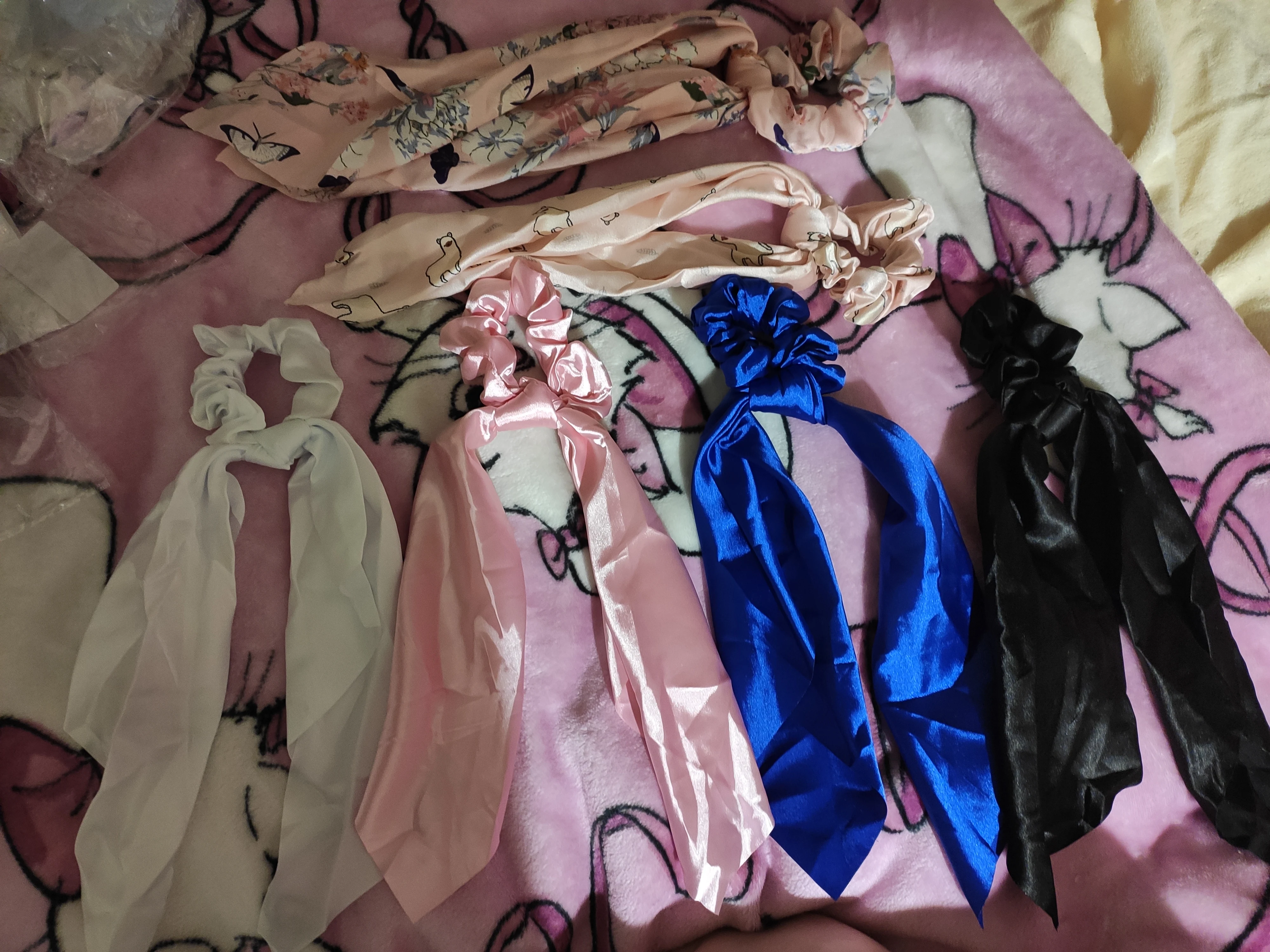 товар в РБ пришел за 2 недели. резинки из плотной яркой ткани, смотрятся дорого. в зелёной ткань поплотнее и узел получается очень большой. снимаю звезду за то, что 2 резинки пришли в одной посылке, а за доставку оплатила как за две. писала продавцу как оплатить одну доставку, но ответа так и не получила( к товару претензий нет, все супер!!