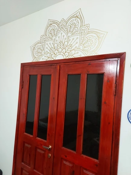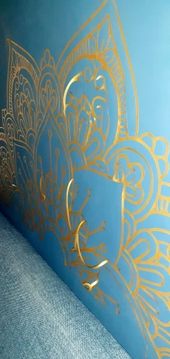Мандала выглядит очень красиво, вписалась в интерьер идеально, но проблема в том, что она в нескольких местах порвалась, когда я снимала защитную пленку и, самое главное, она постоянно отклеивается, то в одном месте, то в другом. При таком раскладе долго она не провесит. Клеила на обои под покраску, стена ровная, без шероховатостей. Немного обидно. Может быть кто нибудь знает как ее зафиксировать, чтоб не отлеплялась