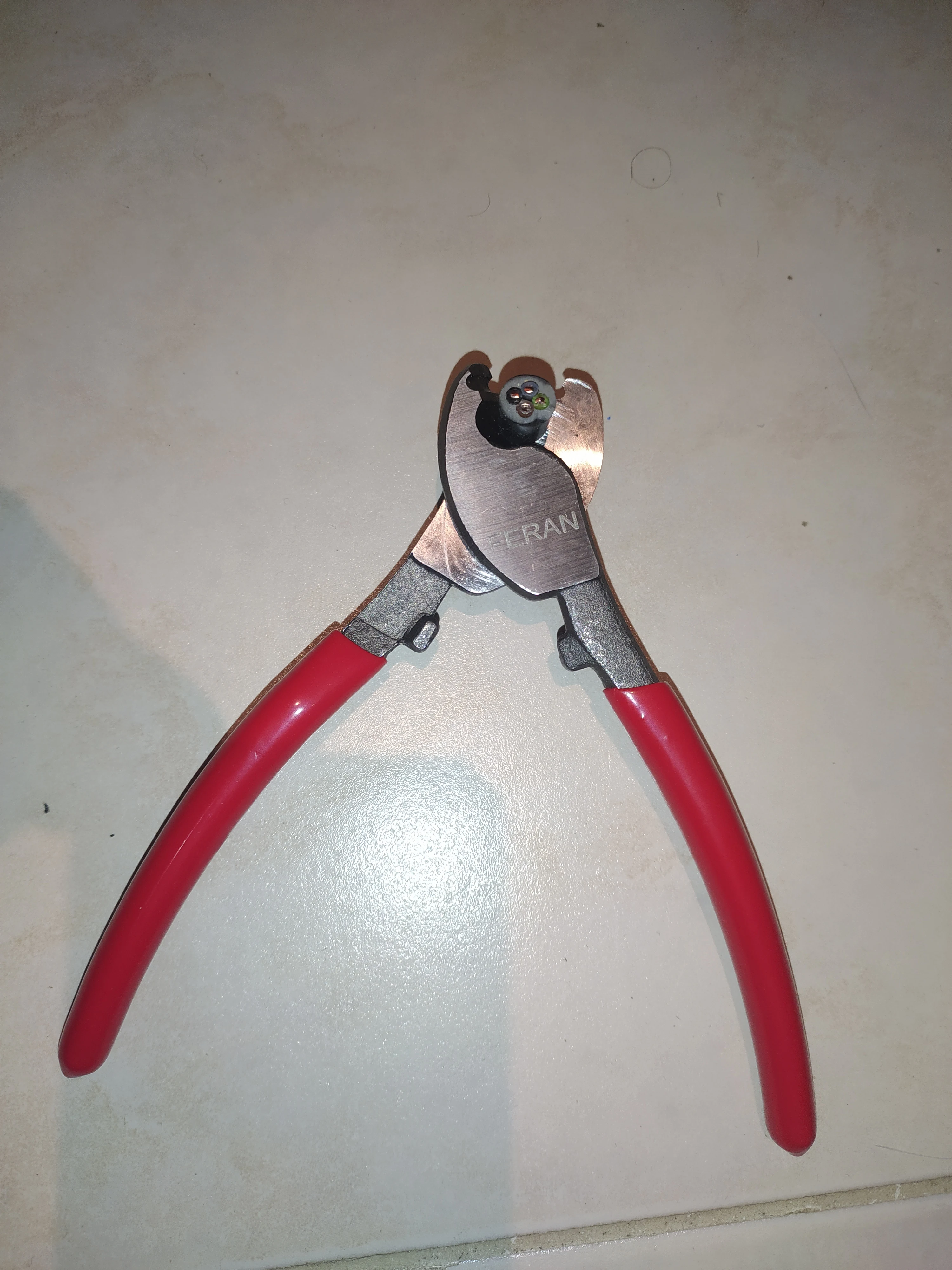 Зажим режет очень хорошо, проблема в использовании, он слишком мал, чтобы резать 16 ² 25 ², и я думаю, что он больше подходит для резки однопроводных проводов, чем кабелей, пример, протестированный с 4G2.5, вы должны открыть его почти до макс., чтобы разрезать кабель не практично. Посылка получена менее чем за 2 недели