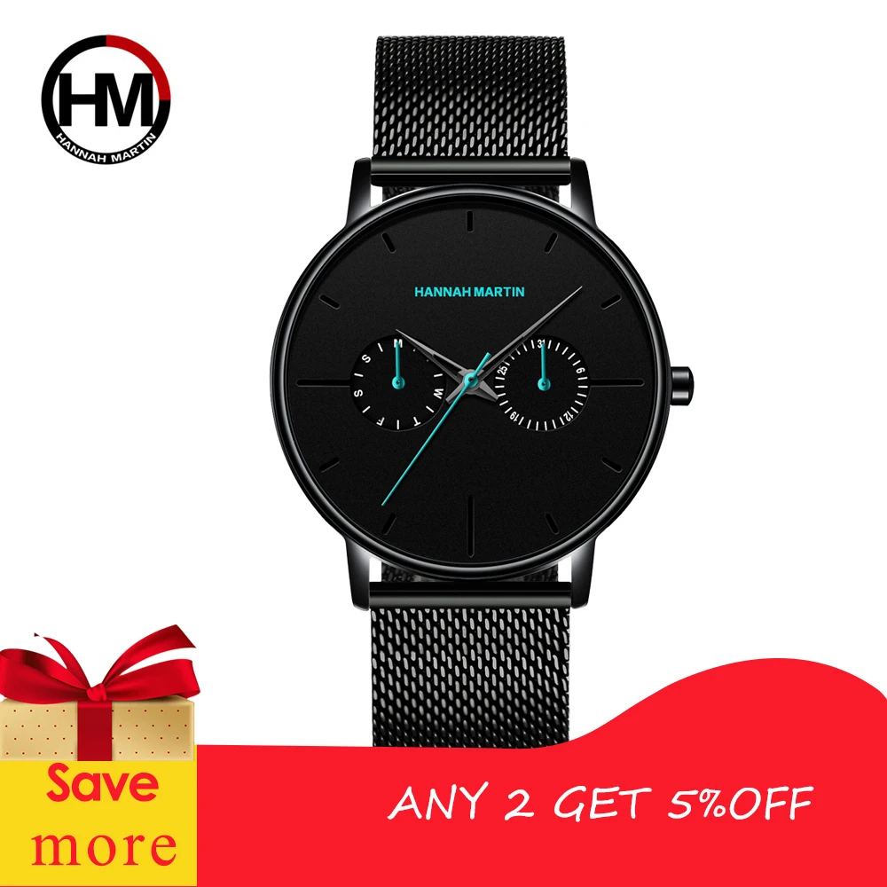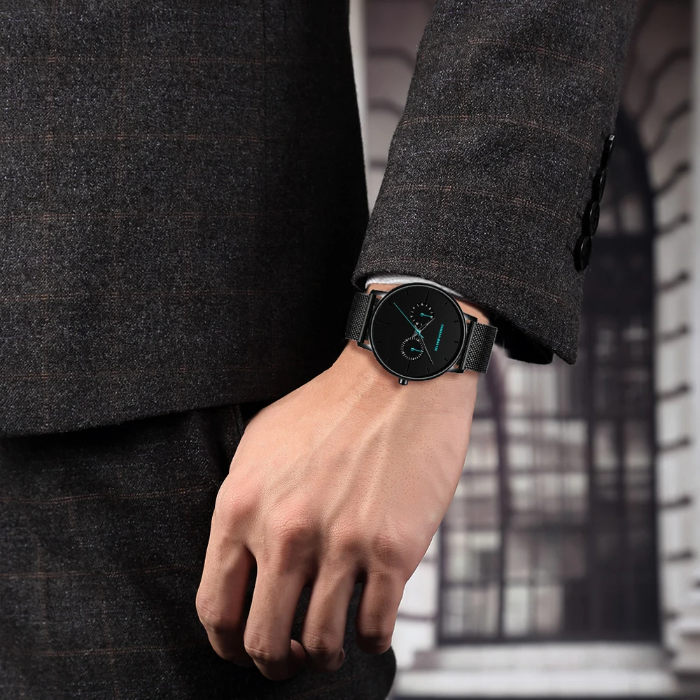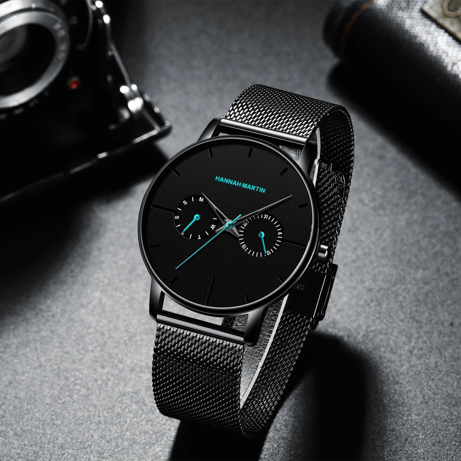 Часы наручные мужские, брендовые Роскошные многофункциональные водонепроницаемые с сетчатым браслетом из нержавеющей стали