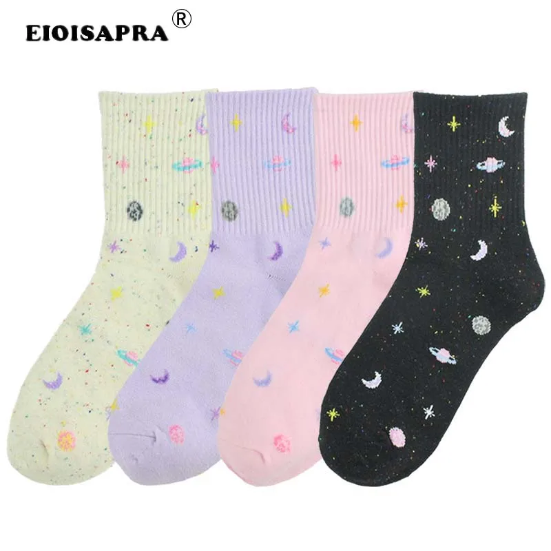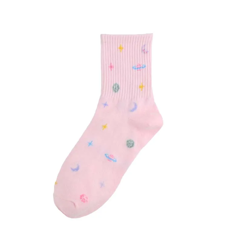 Носки женские в Корейском стиле, модные креативные удобные повседневные дышащие милые, в стиле Харадзюку, с изображением Вселенной и планет, 5 цветов