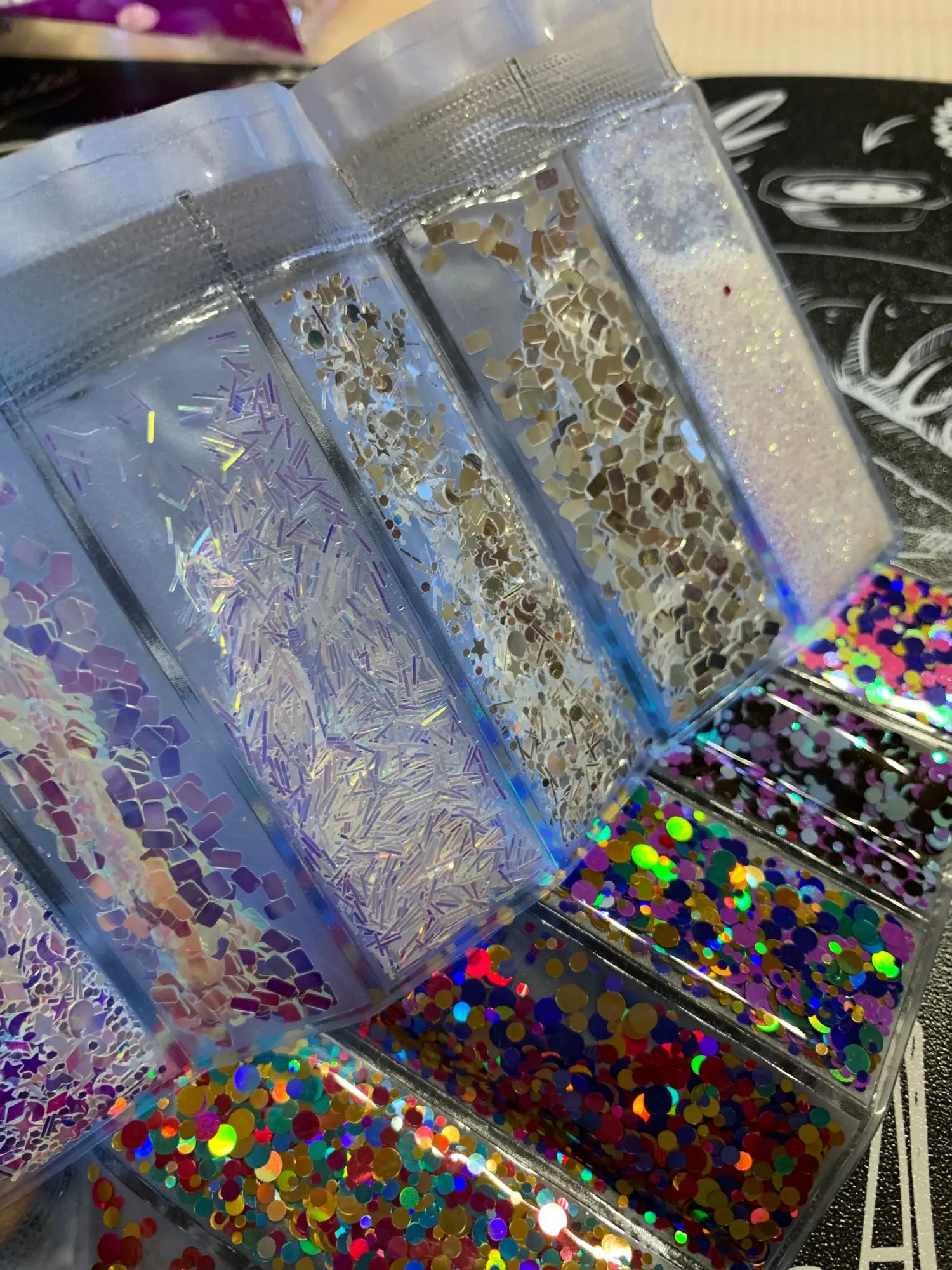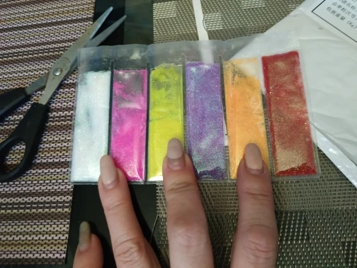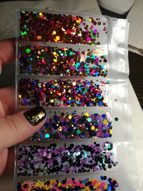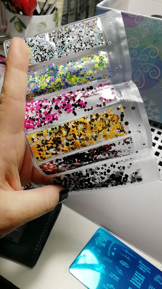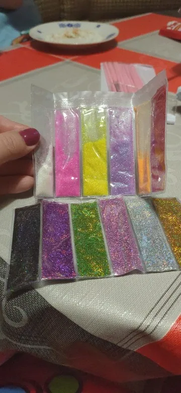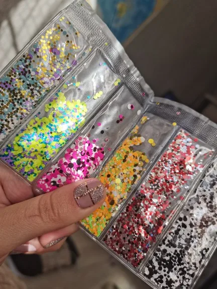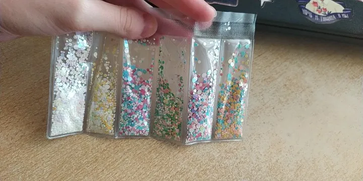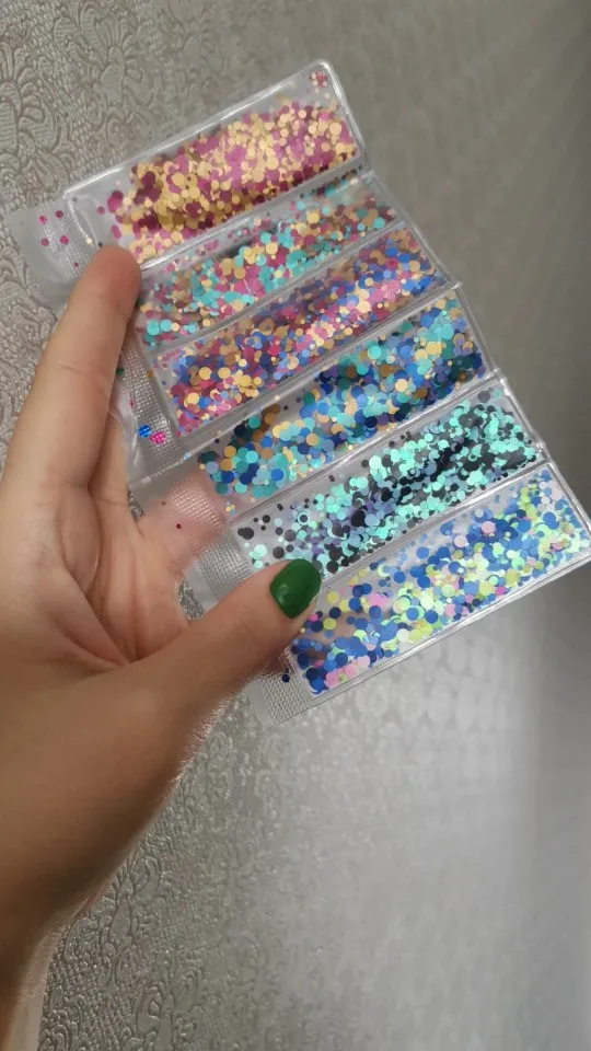 очень милые блестки для ногтей. жалко только что пакет не зип. надо однозначно их куда то пересыпать. цвета очень сочные и яркие, не терпится опробовать их в деле. доставка до спб чуть больше месяца. рекомендую товар и продавца к покупке