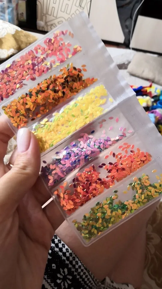 Товар прибыл очень быстро. Все прибыло в соответствии с заказом. Продавец Ничего не перепутал и ничего не потерялось. Спасибо! Все виды пайеток/ конфетти... не знаю что это.. превосходны! Аж дух захватывает (если Вы «сорока», вы будете в восторге! Все 5 звёзд!!