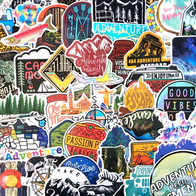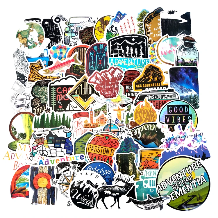 65 шт.лот уличные походные путешествия Приключения наклейки для автомобиля ноутбук чемодан СКЕЙТБОРД гитара дикая водостойкая ПВХ наклейка